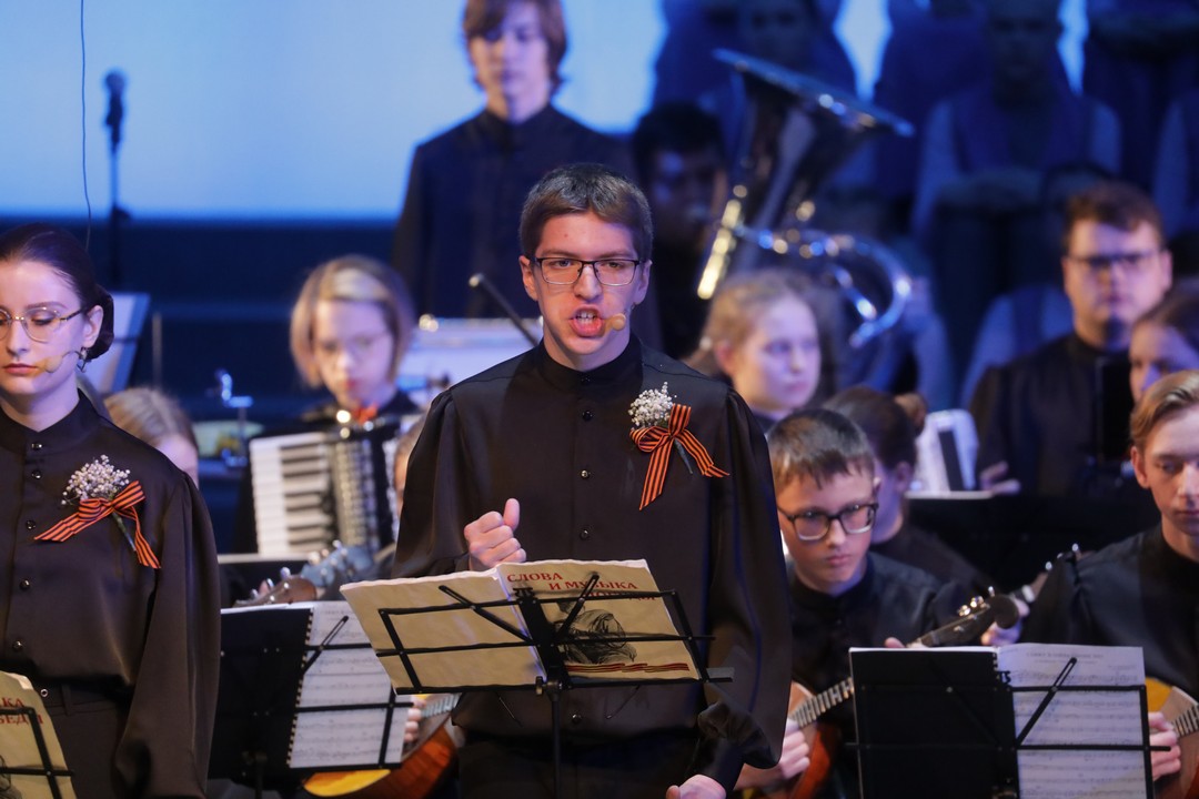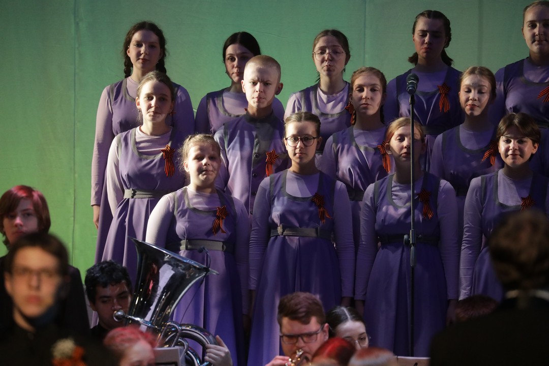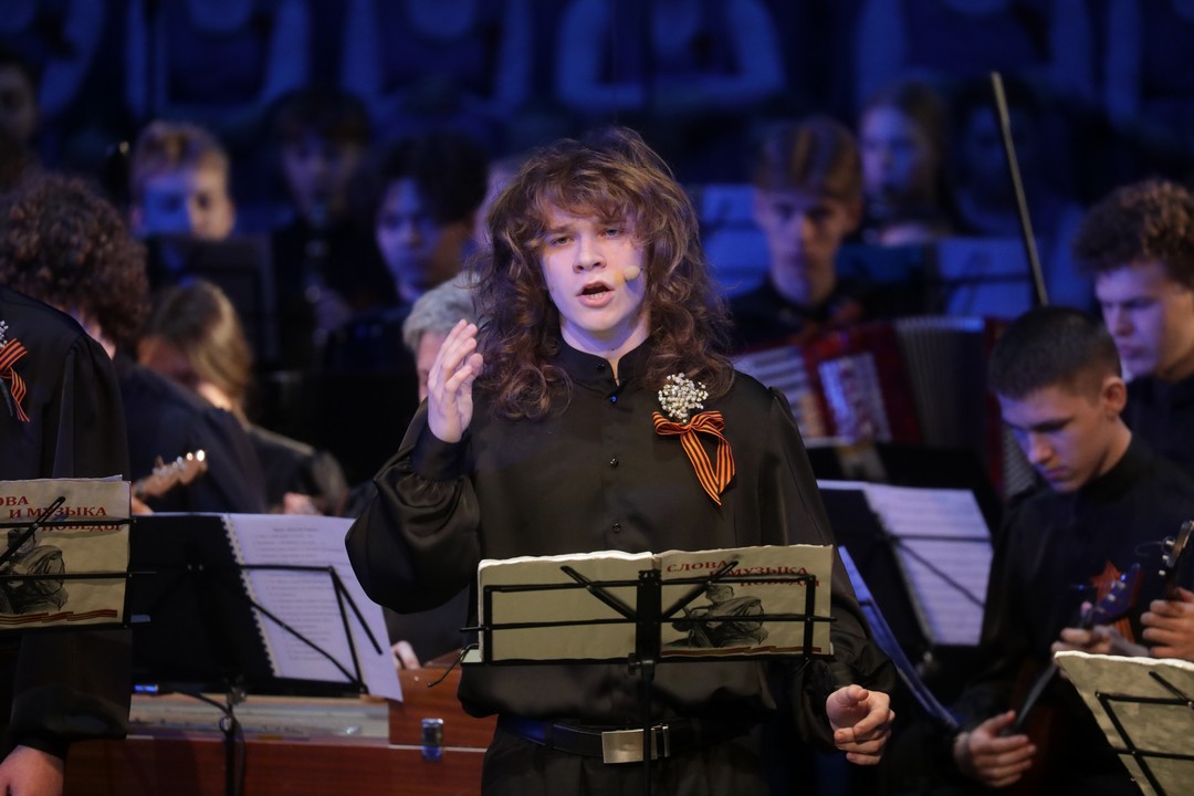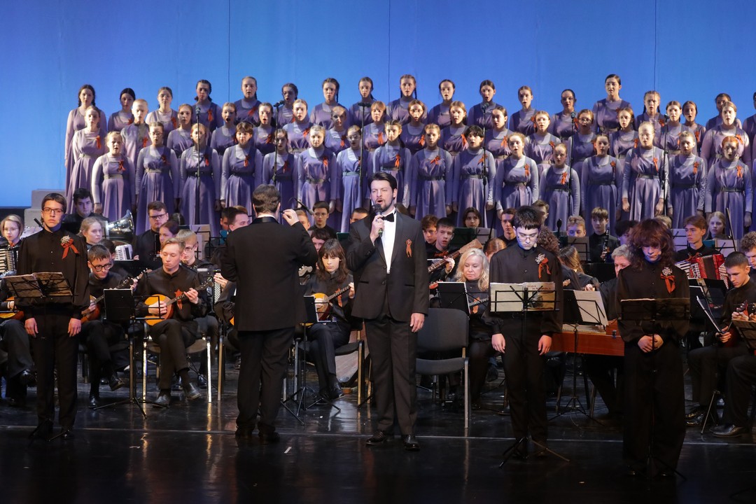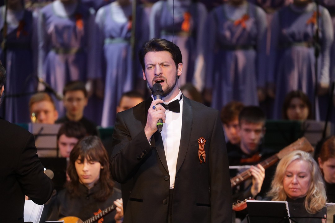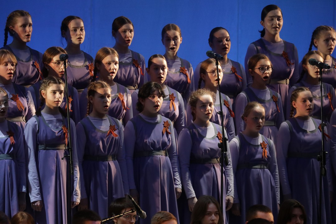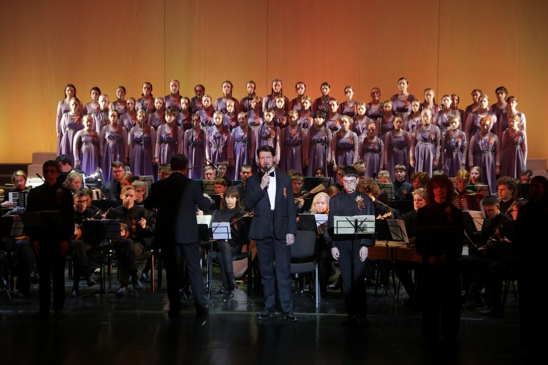 Финальную песню «День Победы» зал пел стоя, вместе с солистом, лауреатом международных конкурсов Сергеем Чепурко и юными артистами.