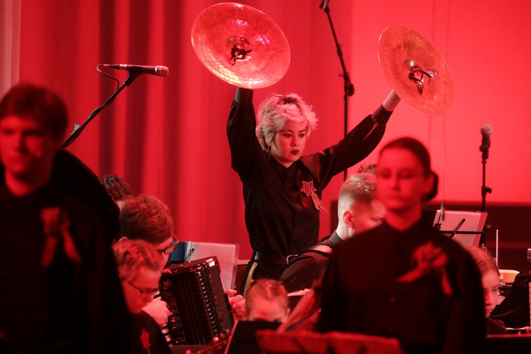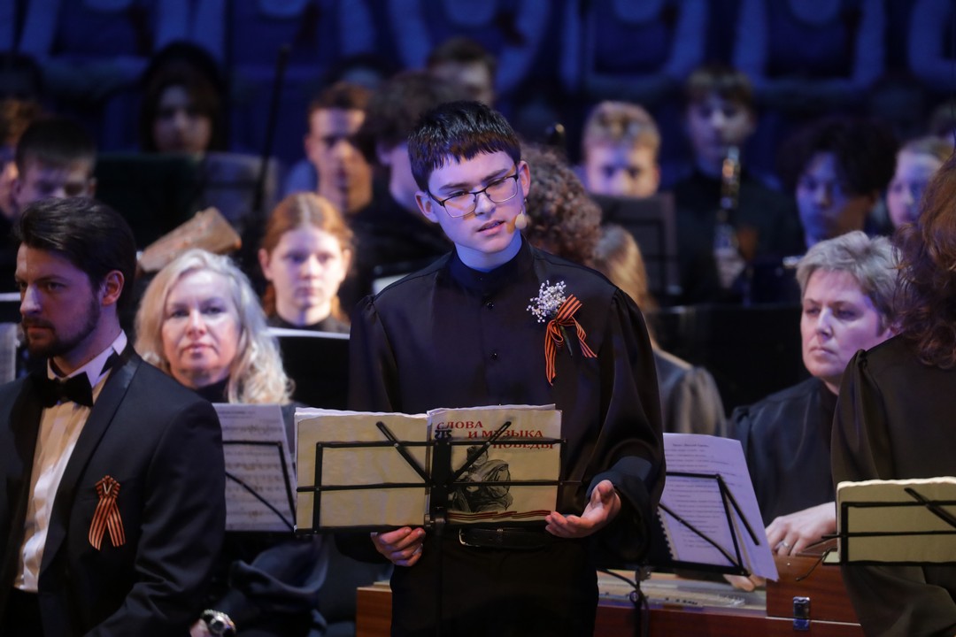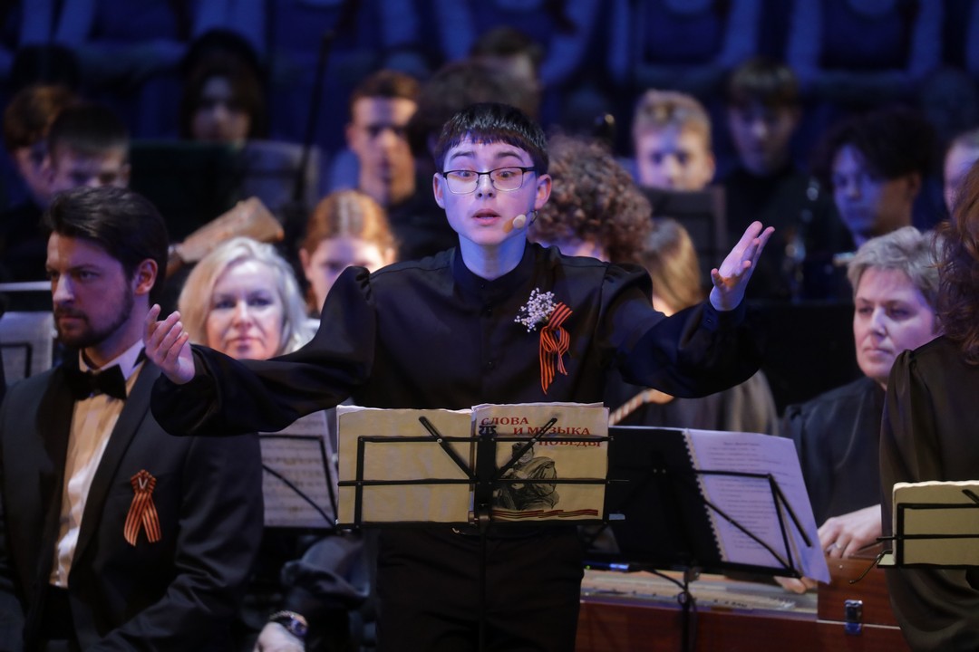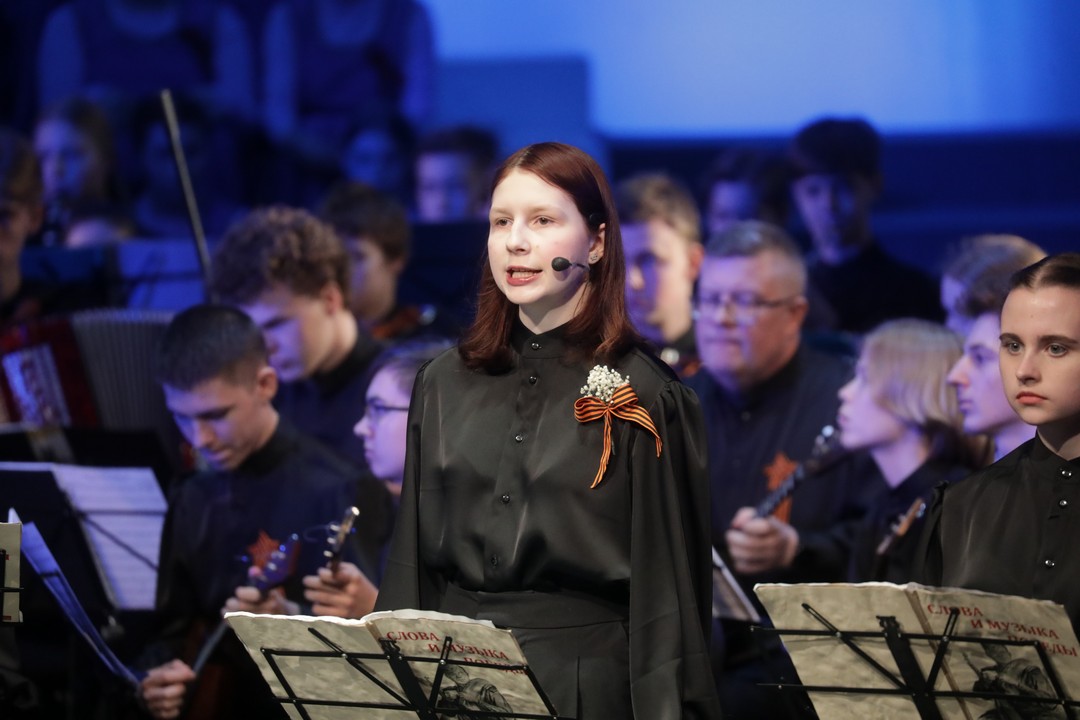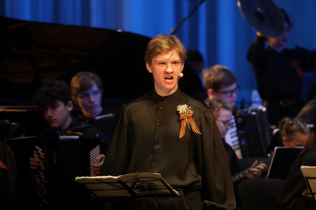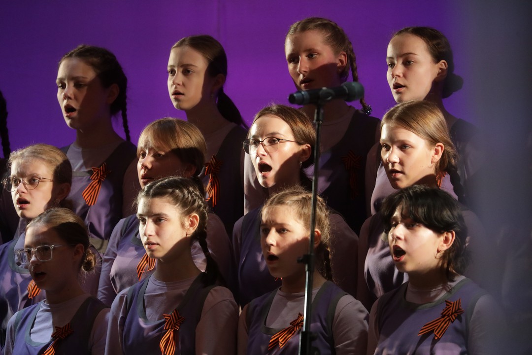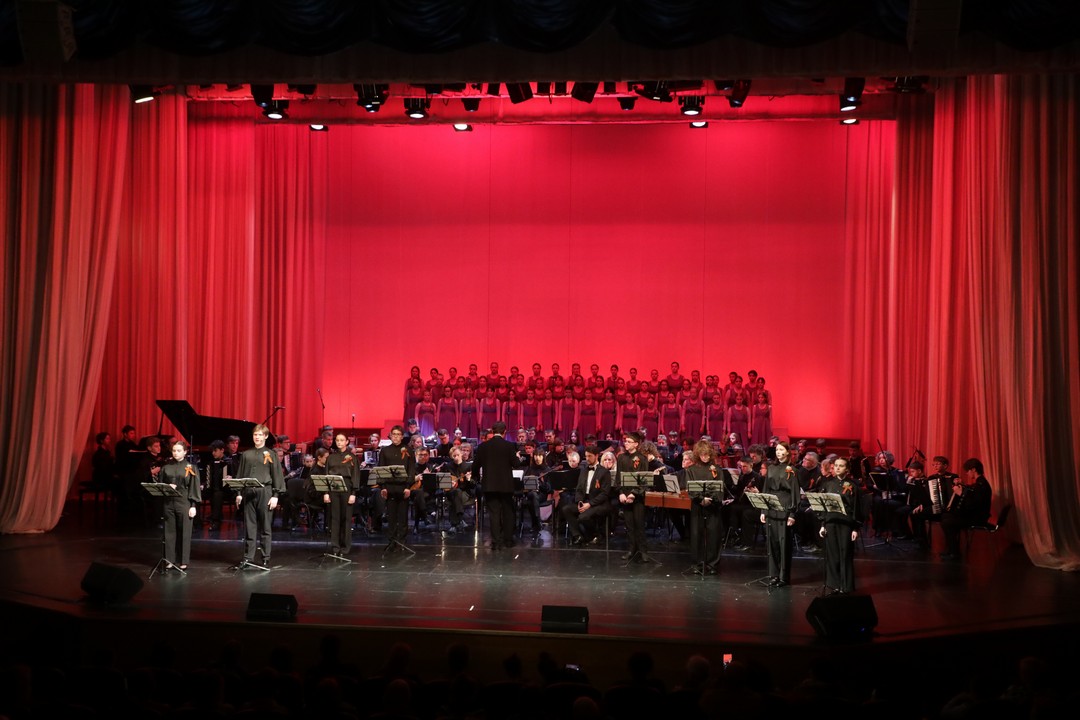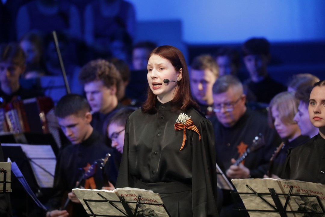 Финальную песню «День Победы» зал пел стоя, вместе с солистом, лауреатом международных конкурсов Сергеем Чепурко и юными артистами.
