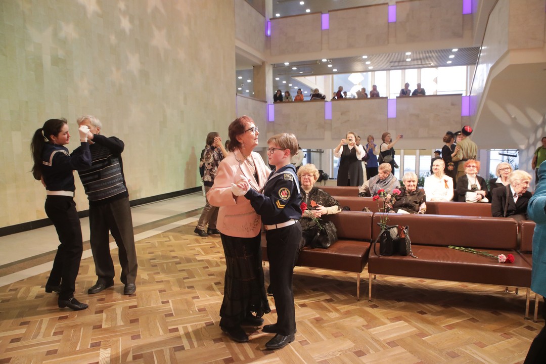 В «Карнавале» почетных гостей заботой и вниманием окружили воспитанники Морского клуба «Юнга». Ребята помогали ветеранам снять верхнюю одежду, подняться по лестнице, приглашали на танец и провожали в зал. Для юнг это особенное мероприятие, ведь свидетелей страшного военного, блокадного времени все меньше, и очень важно пообщаться с ними, услышать их истории и передать их дальше.