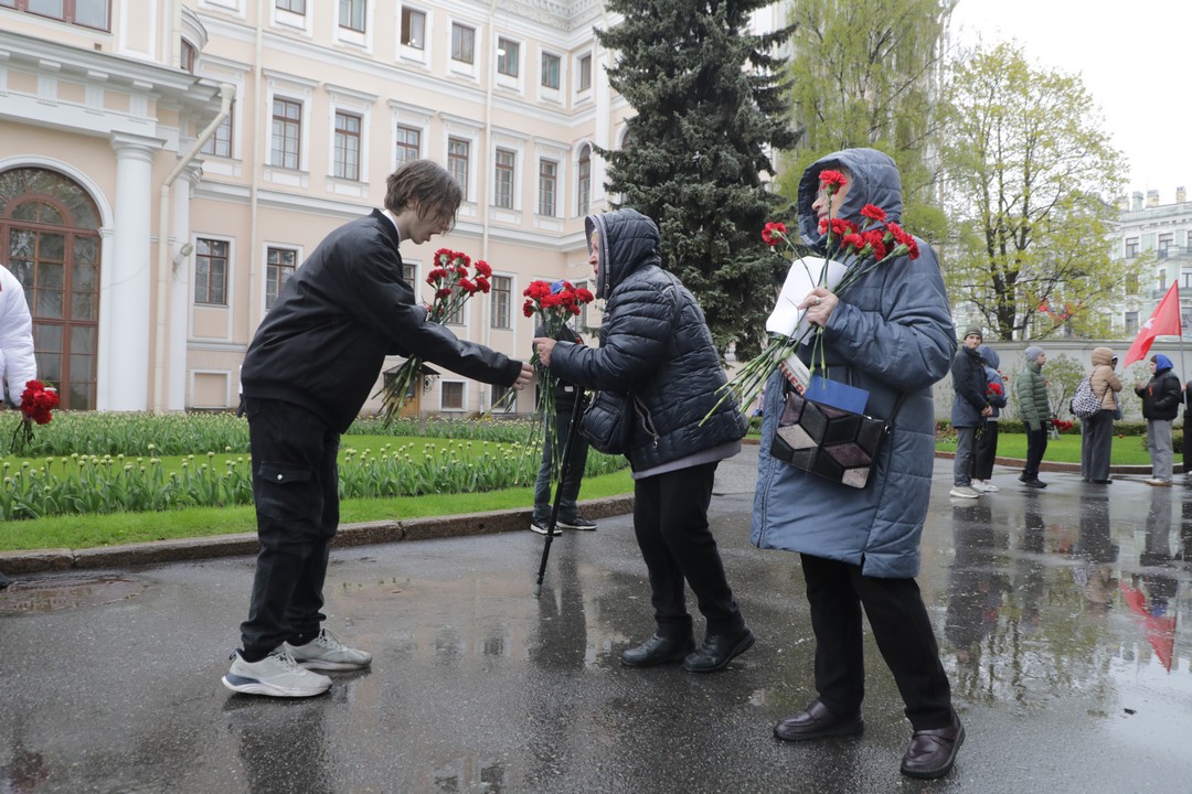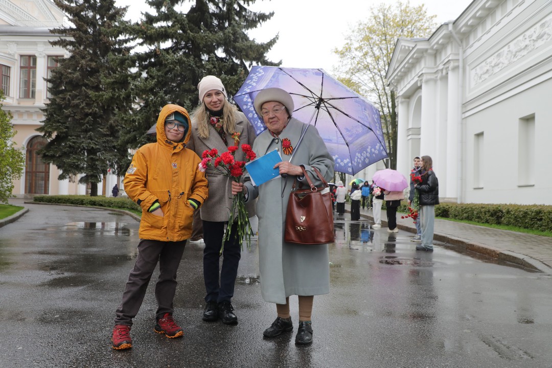 Поздравлять гостей – членов ветеранских организаций города, детей войны, детские общественные объединения «Союза юных петербуржцев» начали еще на улице.