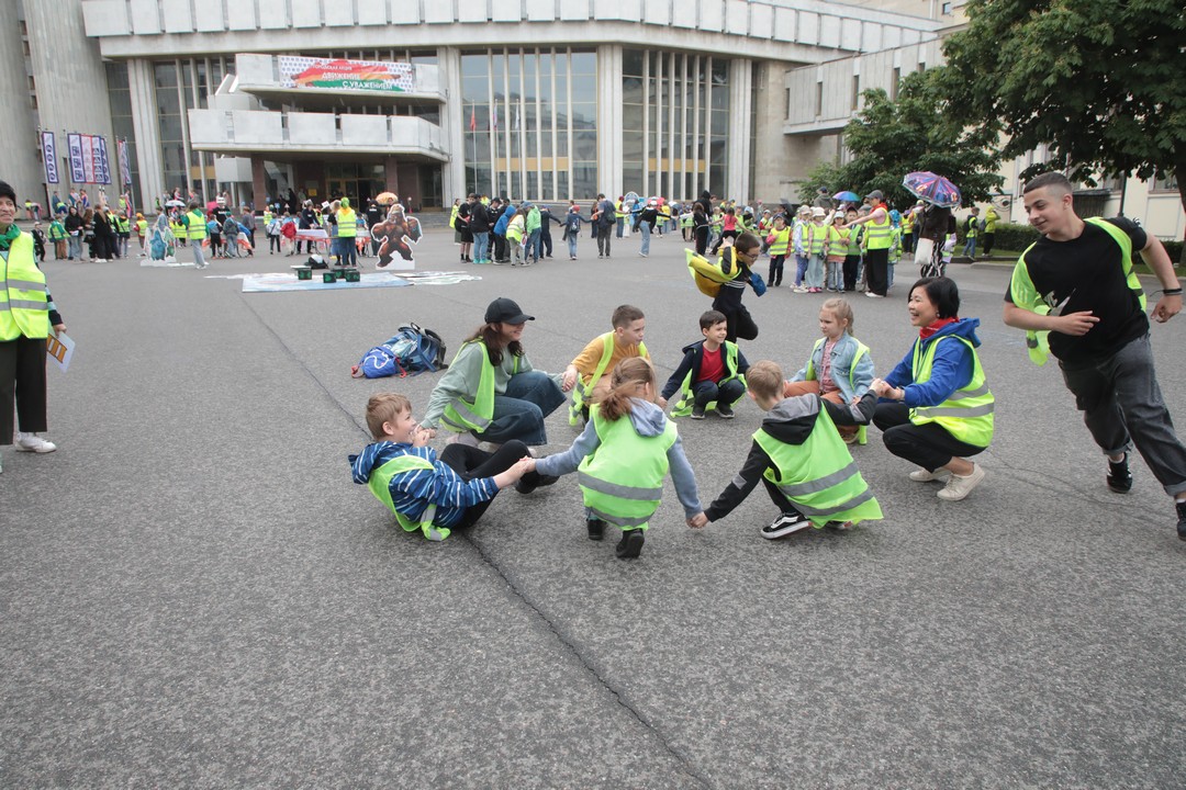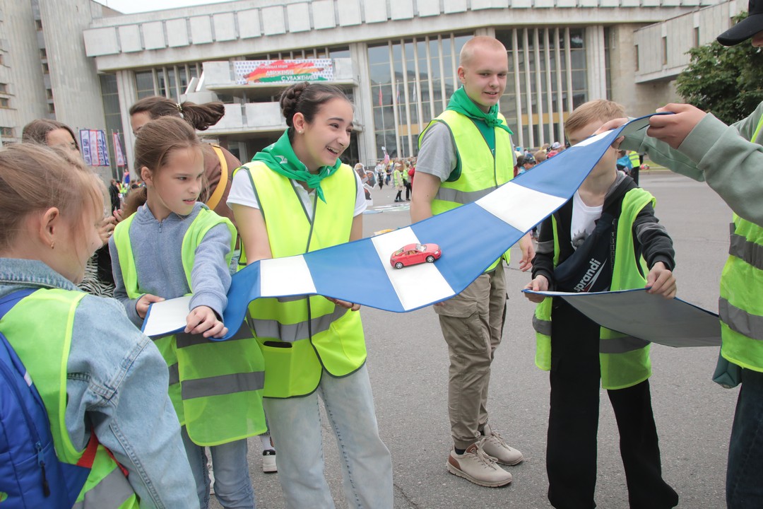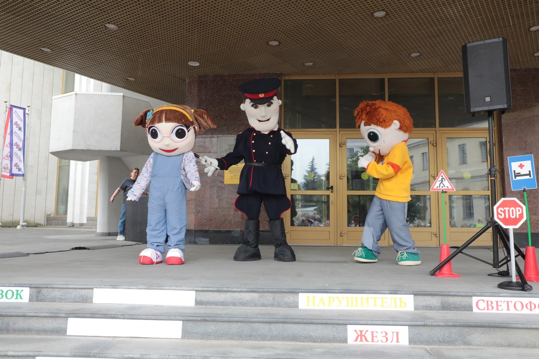 В этом году ведущими праздника стали ростовые куклы Дядя Стёпа, Мальчик и Девочка, которые напомнили собравшимся о важности соблюдения правил дорожного движения.