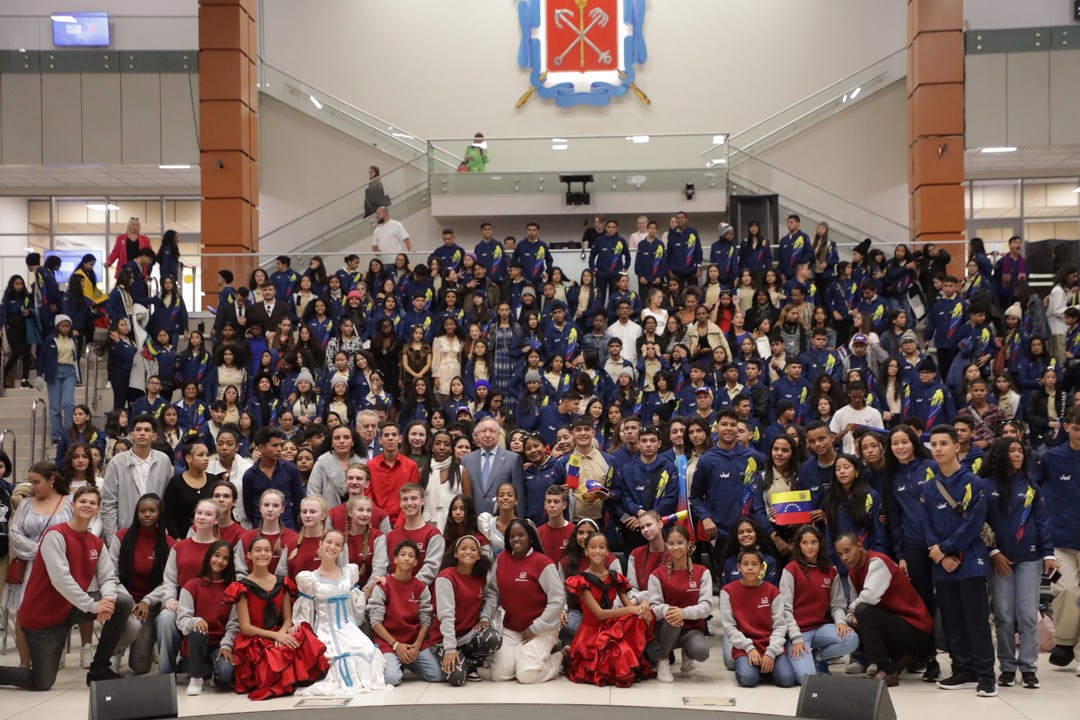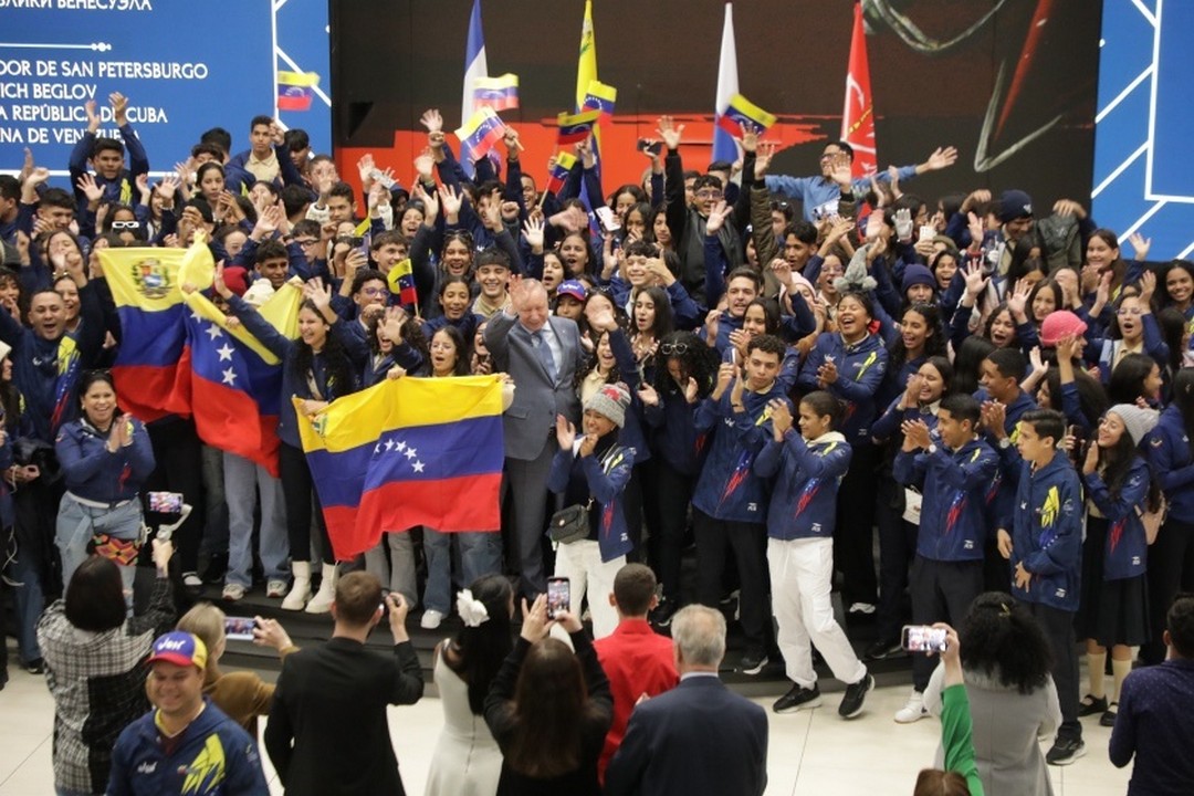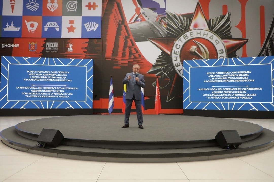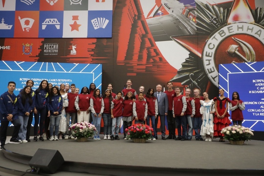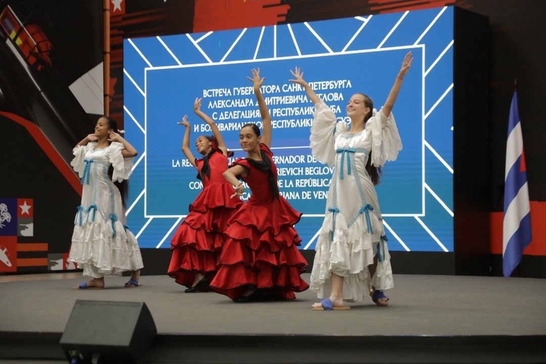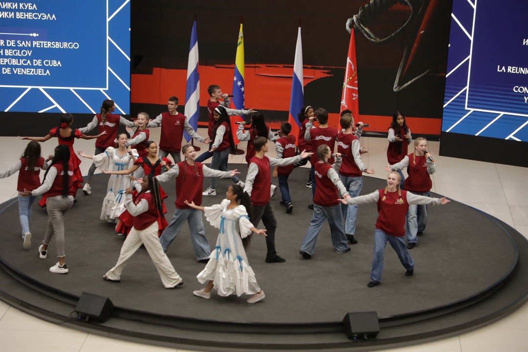 Встреча губернатора Санкт-Петербурга Александра Беглова с делегациями Республики Куба и Боливарианской Республики Венесуэла прошла 27 июня в Мультимедийном историческом парке «Россия – моя история». В ней приняли участие и воспитанники Музыкально-эстрадного театра-студии «Розыгрыш».