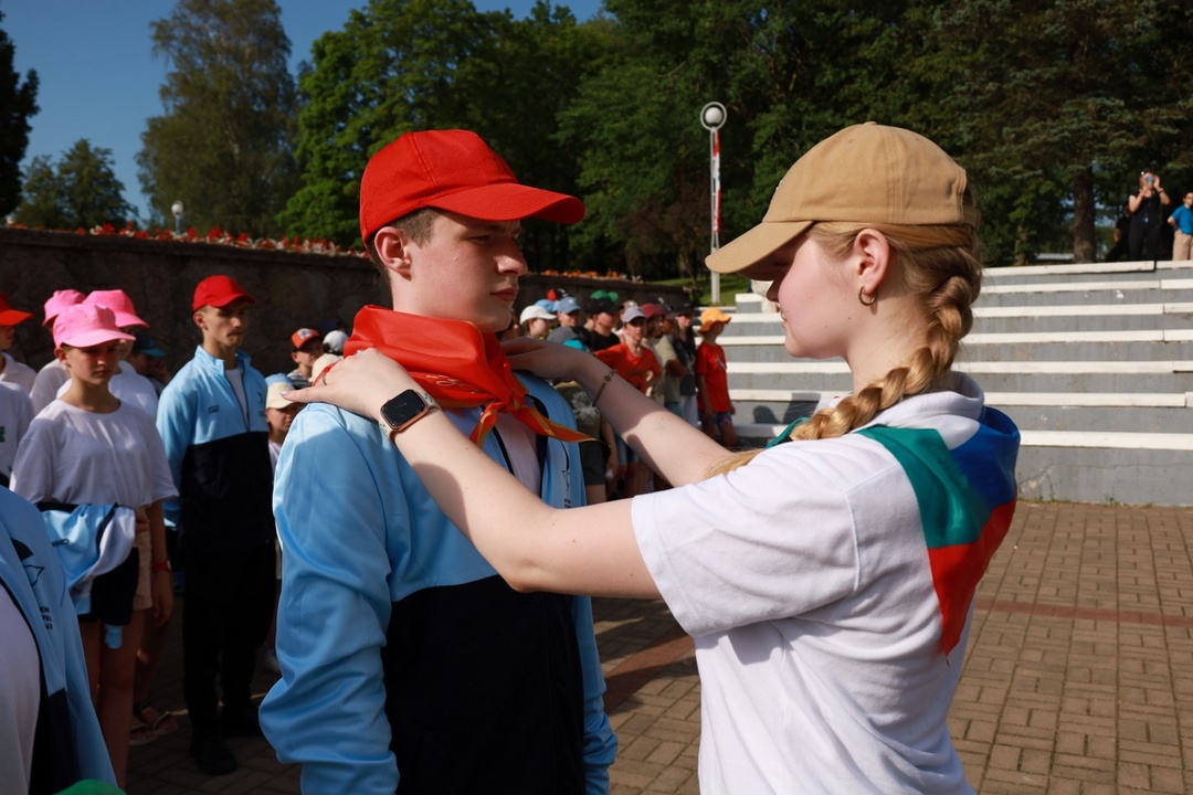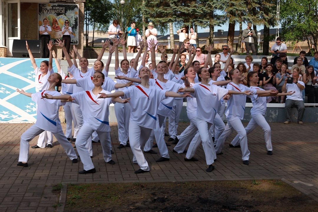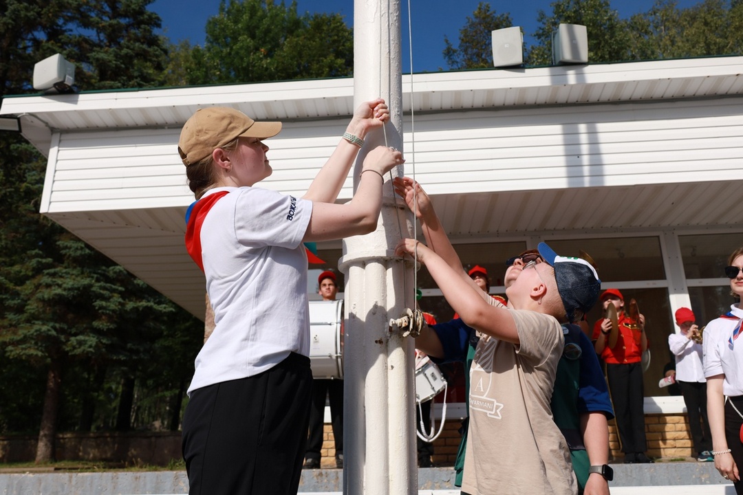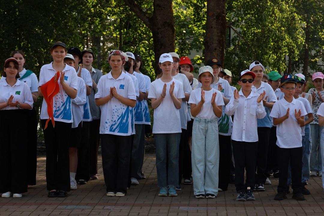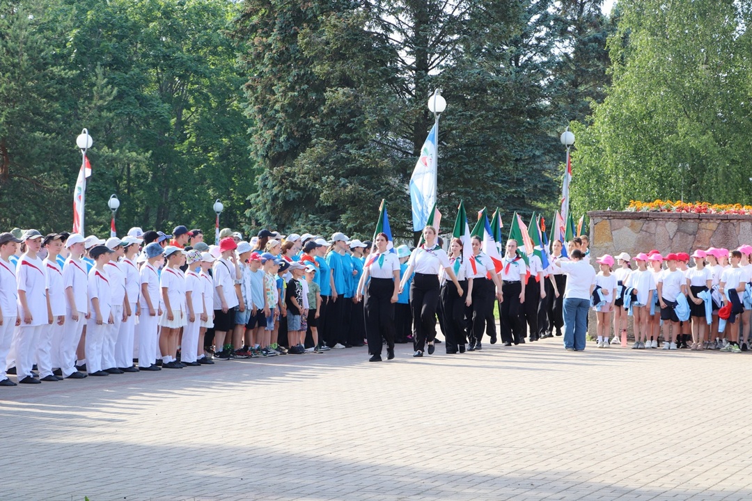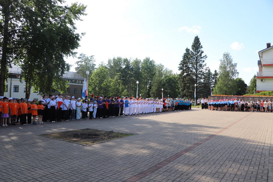 По традиции на линейке поздравили именников, провели церемонию передачи флагов отряда – символа дружбы, единства и верности традиция, вручили активу отрядов официальные знаки различия – галстуки, а также озвучили наказ второй летней смены. С творческим подарком выступил хореографический коллектив Ансамбля песни и танца им. И.О. Дунаевского.