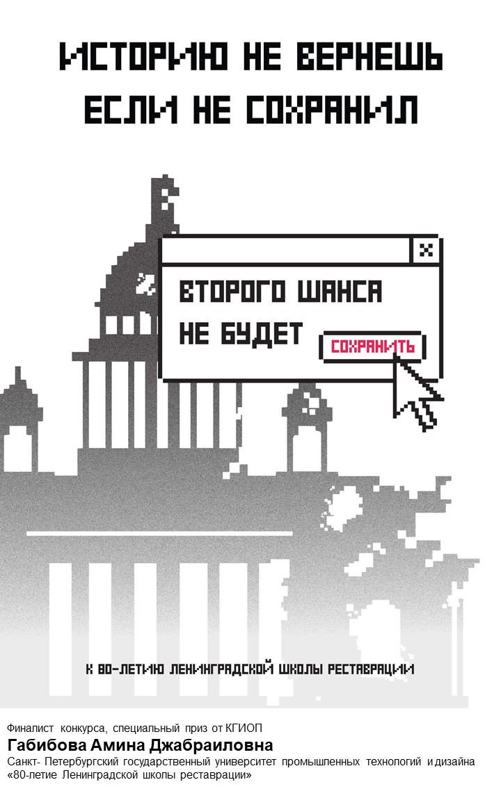 Конкурс графического плаката «Сохранить» — это конкурс для молодёжи, которая заботится о сохранении культурного наследия Санкт-Петербурга.