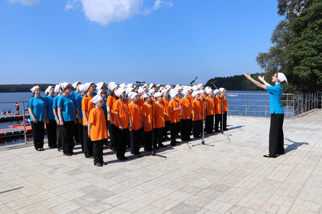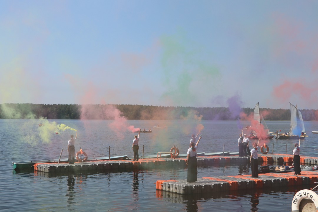 Главное праздничное мероприятие развернулось на озере Зеркальное чуть позже. На водном шоу-параде «Под парусом – к победе» весь лагерь наблюдал за мастерством юнг, ловко управляющих различными судами.
