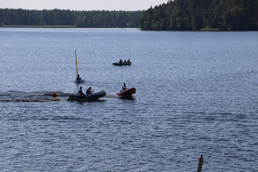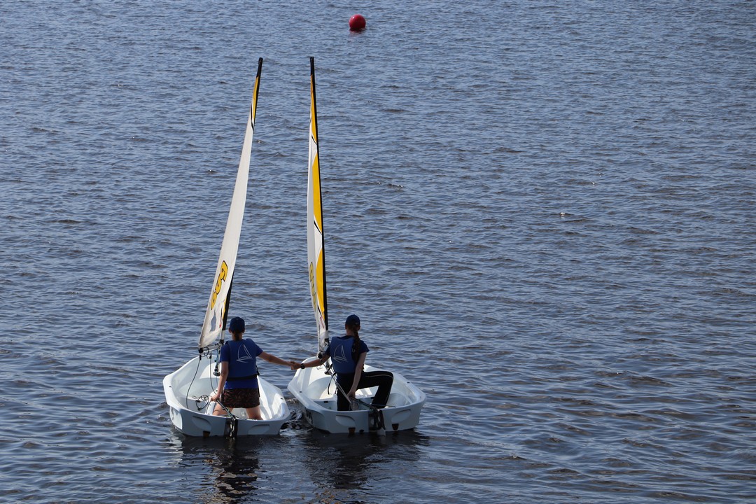 Следом на озере показались паруса одноместных швертботов типа «БАГ», затем свое мастерство демонстрировали юнги на катамаранах. Яркой точкой стало выступление педагогов Морского клуба «Юнга», обеспечивающих безопасность на моторных лодках: Антона Константиновича Дмитриева и Владимира Сорокина! Они устроили настоящее шоу – вальс на воде!