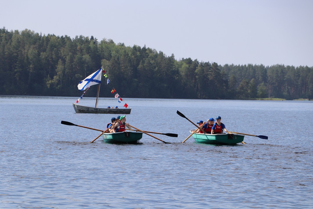 Первым в акваторию Зеркального вышли шлюпки «ПЕЛЛА-ФИОРД», которыми управляли младшие юнги, ведь это плавательное средство отлично подходит для приобретения навыков гребли для ребят от 10 лет.