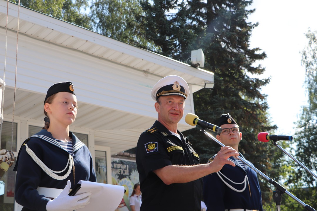 Он обратился к зеркалятям и поздравил их с праздником: «Дорогие друзья! Для меня сегодня большая честь поздравить вас на этой линейке. Очень многие, кто прошел школу «Зеркального» отличается инициативой, умением принимать быстрые решения, способностью на подвиги! А это отличительная черта каждого моряка! Пускай на всю жизнь у вас сохранится память о лагере и об этом празднике. С Днем Военно-Морского Флота России!»