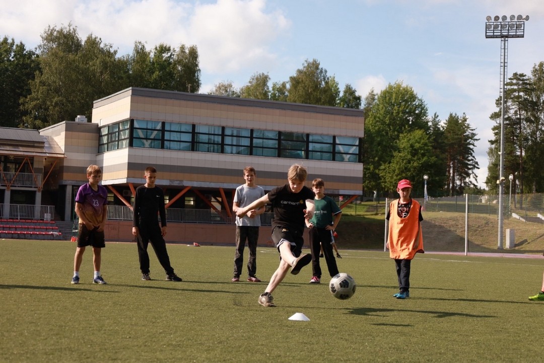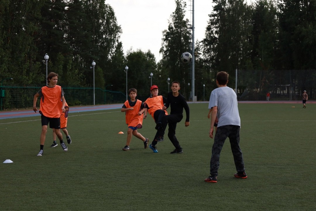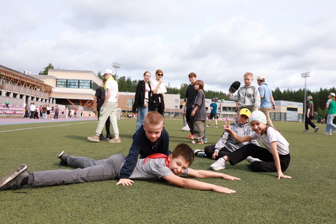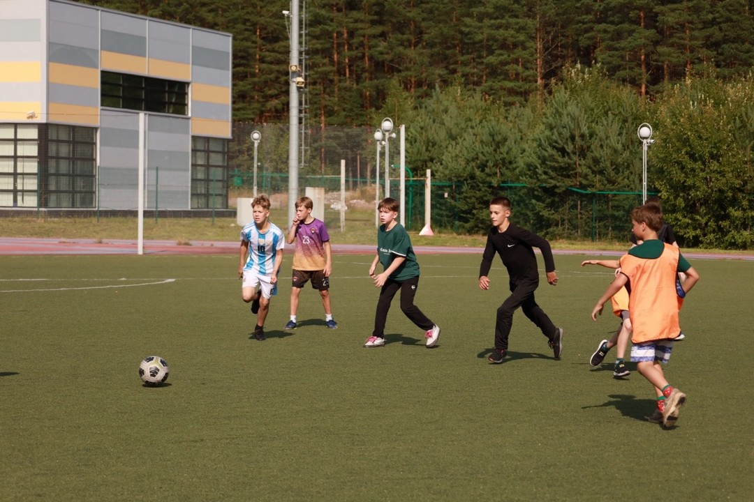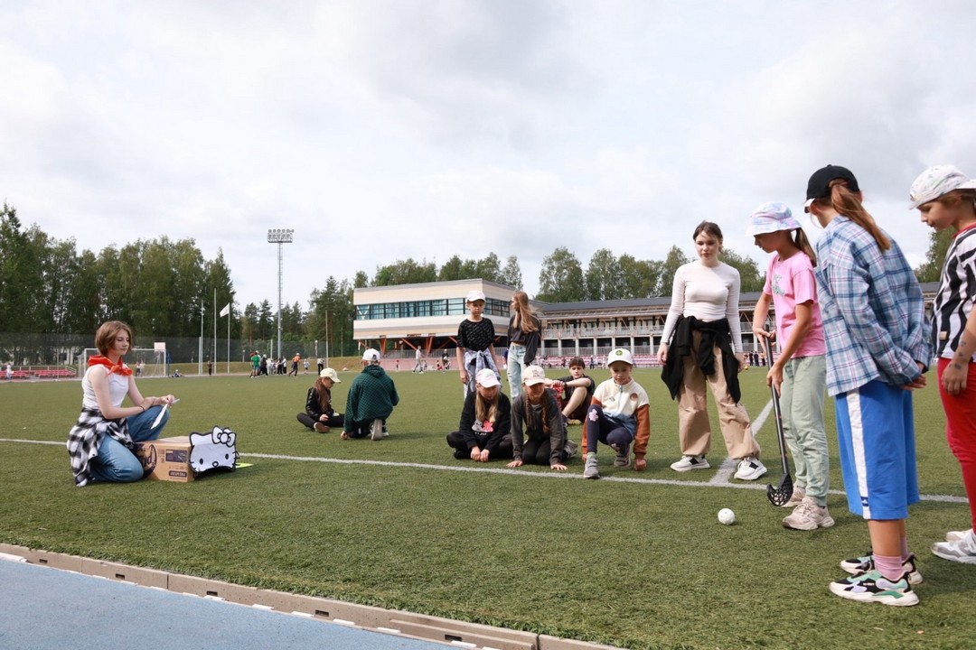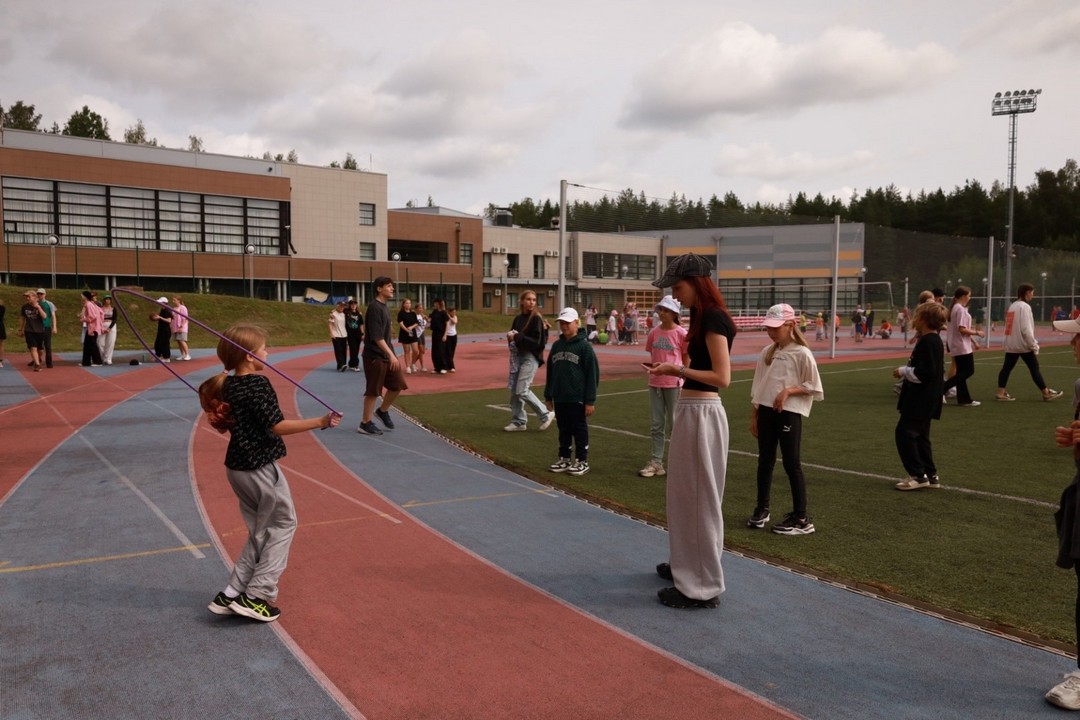 В течение дня школьники ставили спортивные рекорды: на футбольном поле развернулись практически Олимпийские игры. На игре «Большая база рекордов» ребята ходили по стадиону в командах и выполняли спортивные задания: прыжки на скакалке и в длину, забивали мяч клюшкой в ворота, набивали как можно больше раз мяч о ракетку. Далее начались футбольные матчи между 9 и 11, 8 и 13, 12 и 14, а также 11 и 12 отрядами.