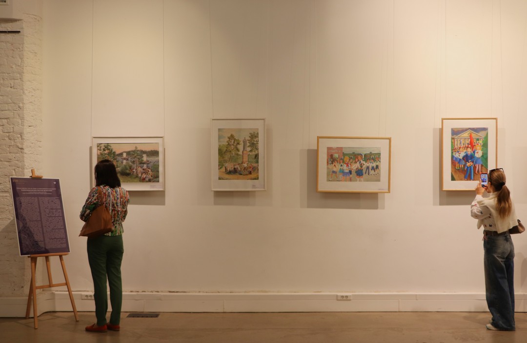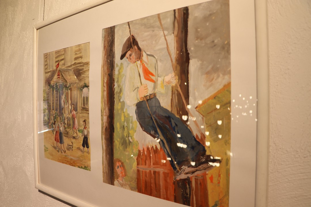 Детские работы, представленные на экспозиции, выполнены с использованием разных материалов: акварели, карандаша, фломастеров, пера. А отражены на рисунках будни советского школьника. Побывать на выставке – словно перенестись на машине времени в 50-90-ее года. На каждом рисунке школьники изображены в пионерских галстуках. Зрители с интересом разглядывали каждую деталь: газету «Правда», которую читает папа после работы, шапки-ушанки, шубы и валенки на ребятах, катающихся на санках с горки, пионерские марши, витрины магазинов и многое другое!
