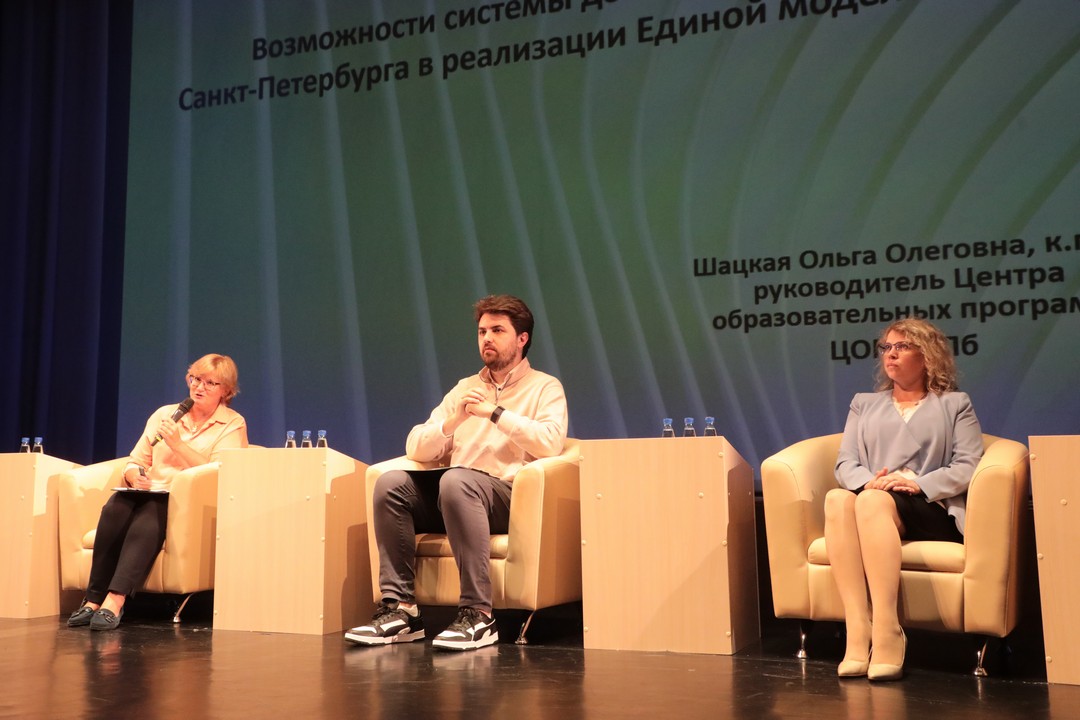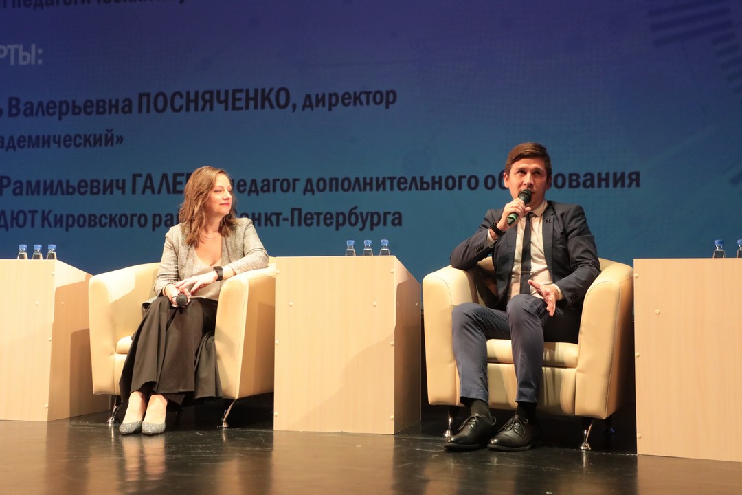 Завершилась сессия треком «Профессиональный рост», в котором были затронуты вопросы наставничества как инструмента бесшовного перехода к будущей профессии и эффективной технологии сопровождения профессионального роста педагогов, а также реализации единой модели профориентационной деятельности в РФ через систему дополнительного образования. Своим мнением и опытом поделились: Ольга Олеговна Шацкая, кандидат педагогических наук, руководитель центра образовательных программ «Центра опережающей профессиональной подготовки Санкт-Петербурга», Александр Николаевич Низов, руководитель федерального методического центра по развитию института наставничества, главный методолог АНО «Центр знаний «Машук» и Наталья Владимировна Шаталова, директор Дома творчества «Измайловский» Адмиралтейского района Санкт-Петербурга.