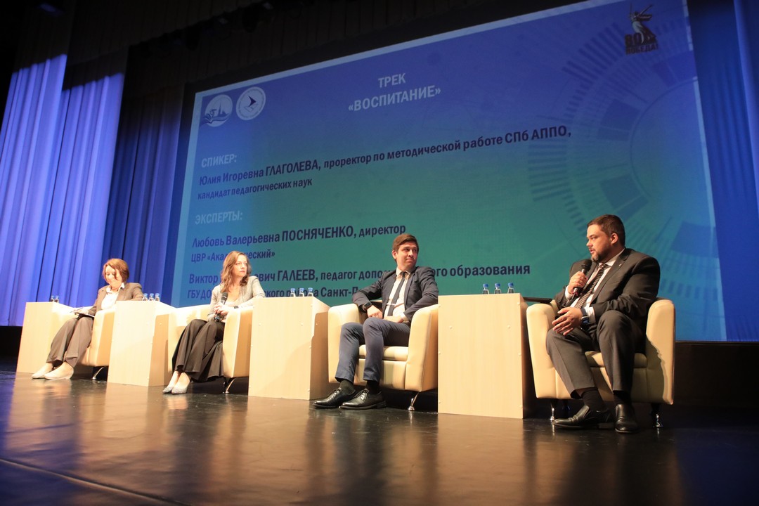 Спикером трека «Воспитание» стала Юлия Игоревна Глаголева, проректор по методической работе СПб АППО, кандидат педагогических наук, экспертами - Любовь Валерьевна Посняченко, директор ЦВР «Академический», Виктор Рамильевич Галеев, педагог дополнительного образования Дворца детского (юношеского) творчества Кировского района Санкт-Петербурга.