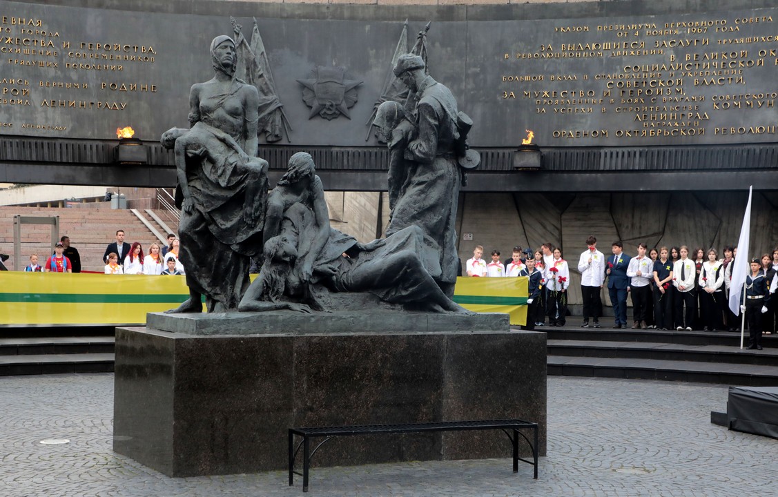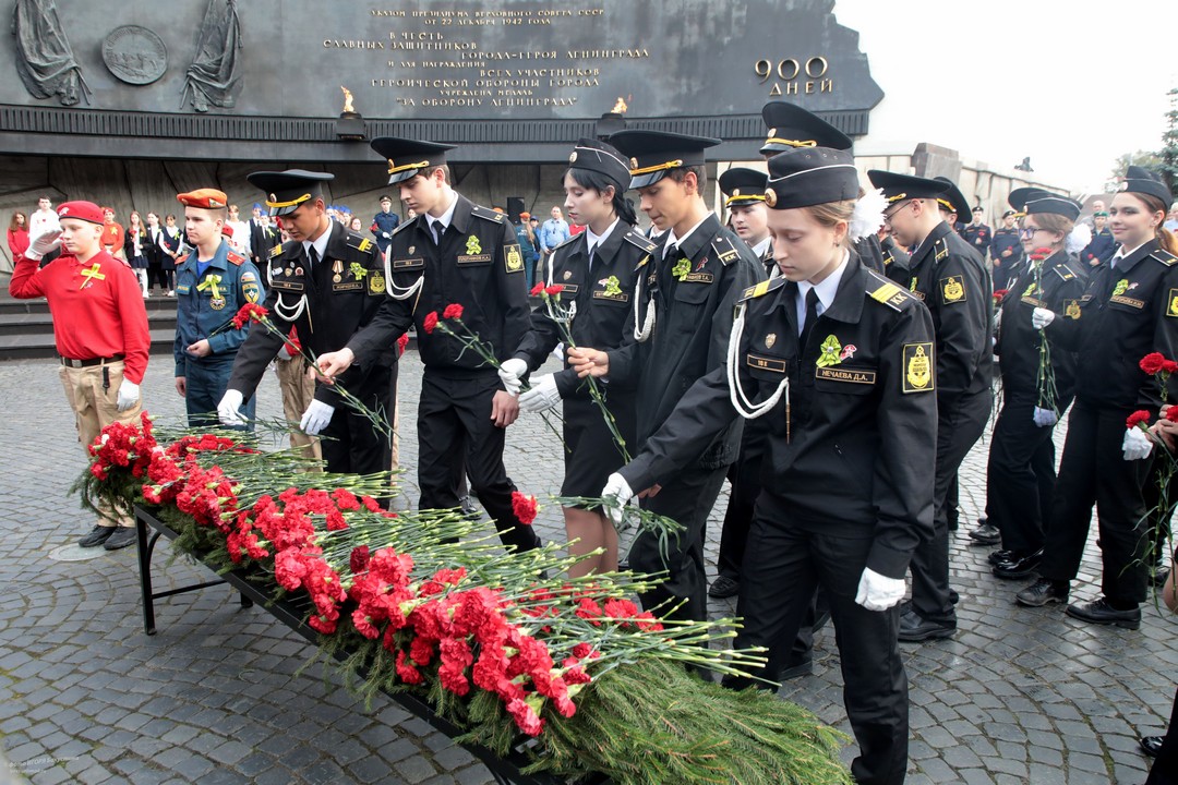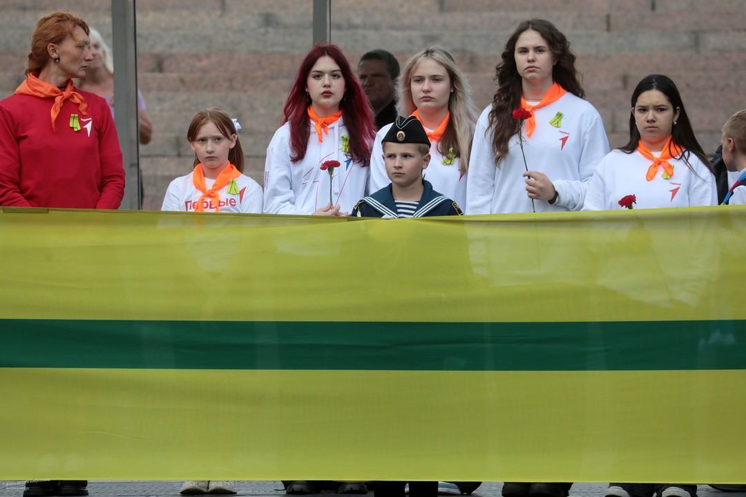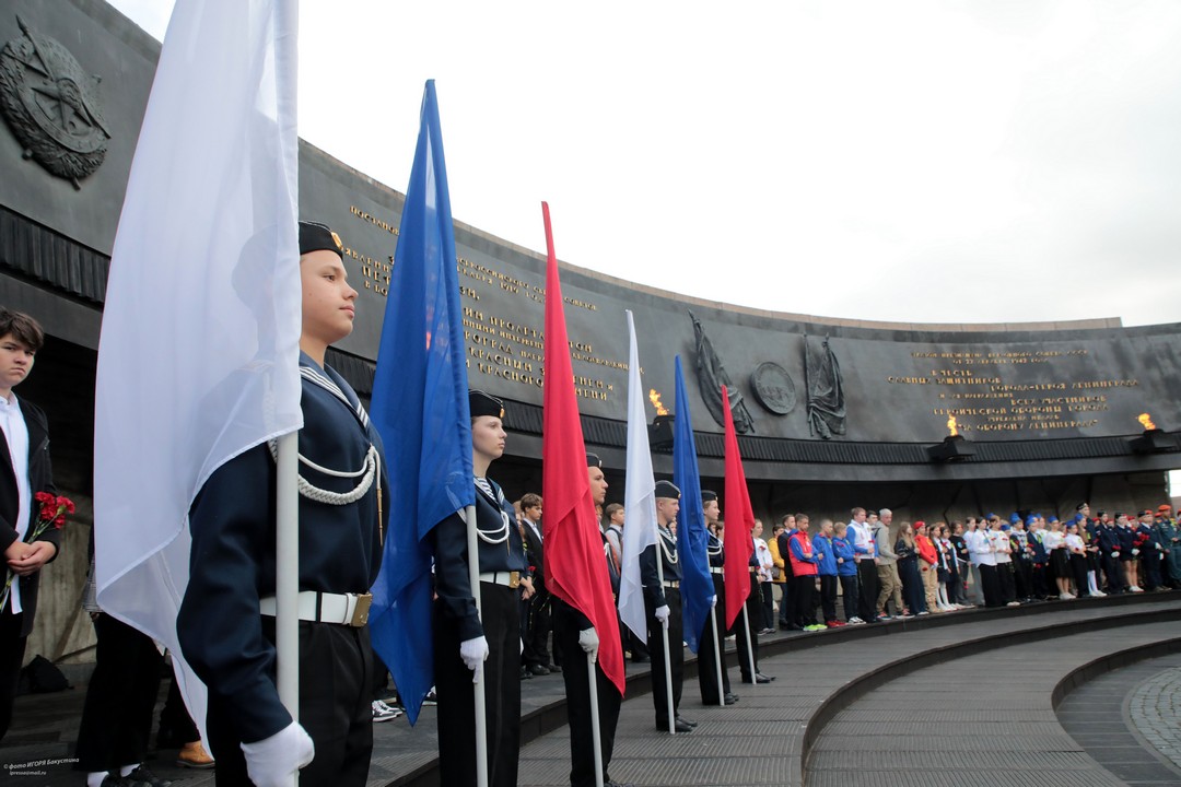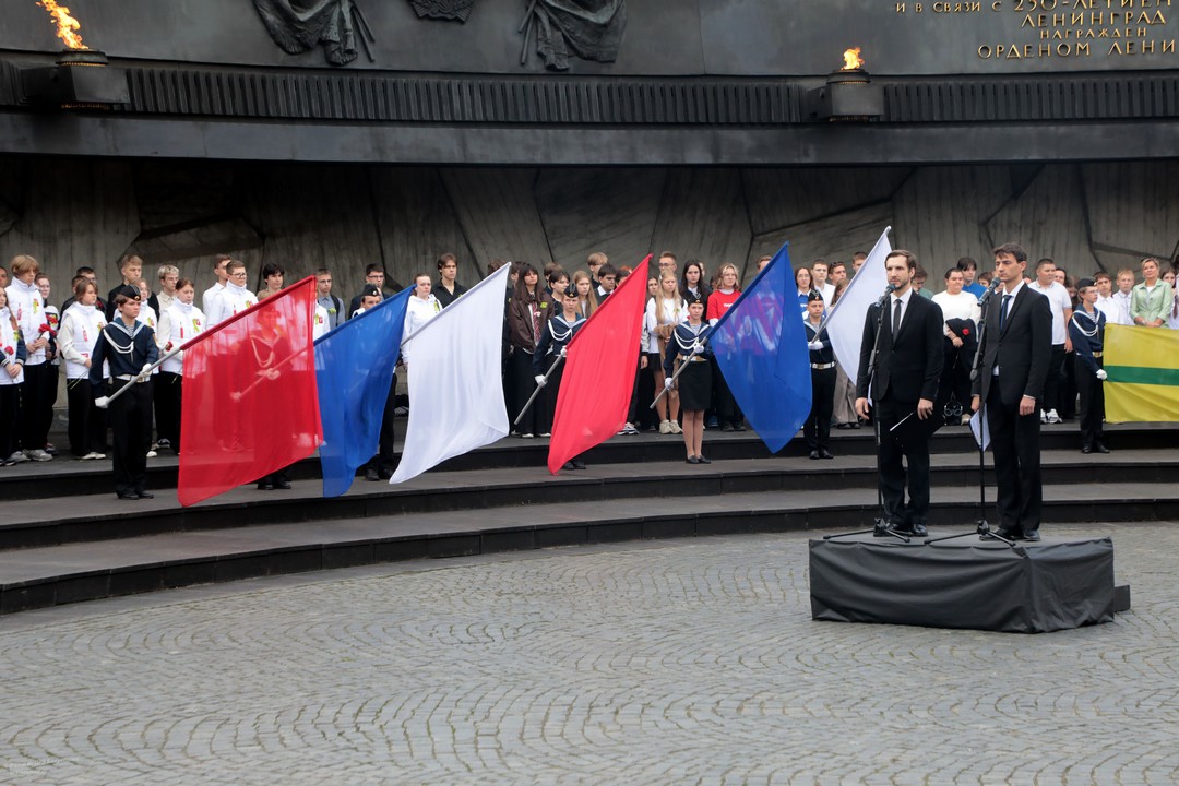 У Монумента героическим защитникам Ленинграда на площади Победы школьники, участники детских общественных объединений и жители города собрались вместе, чтобы почтить память погибших.