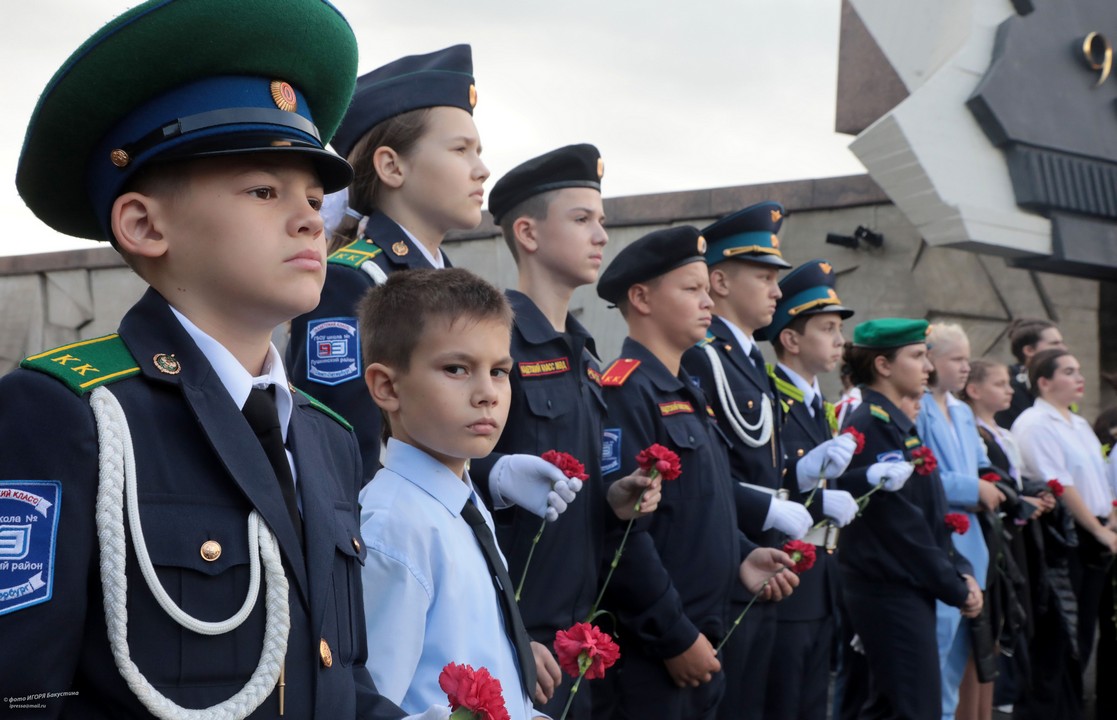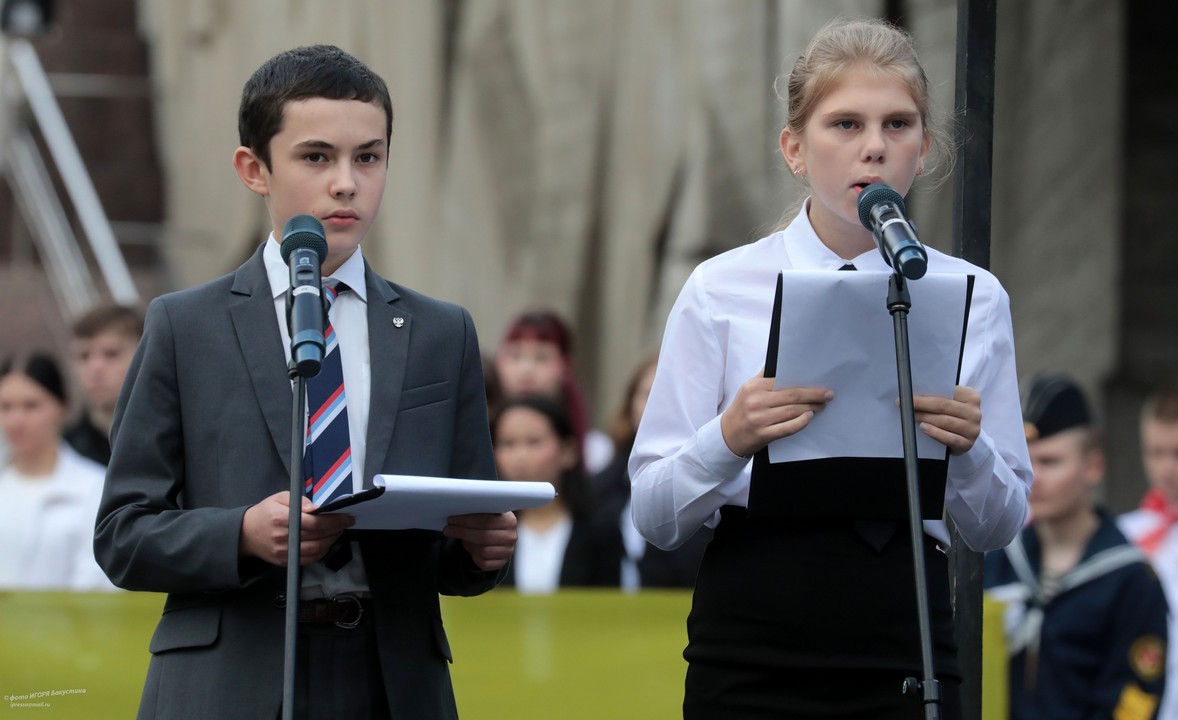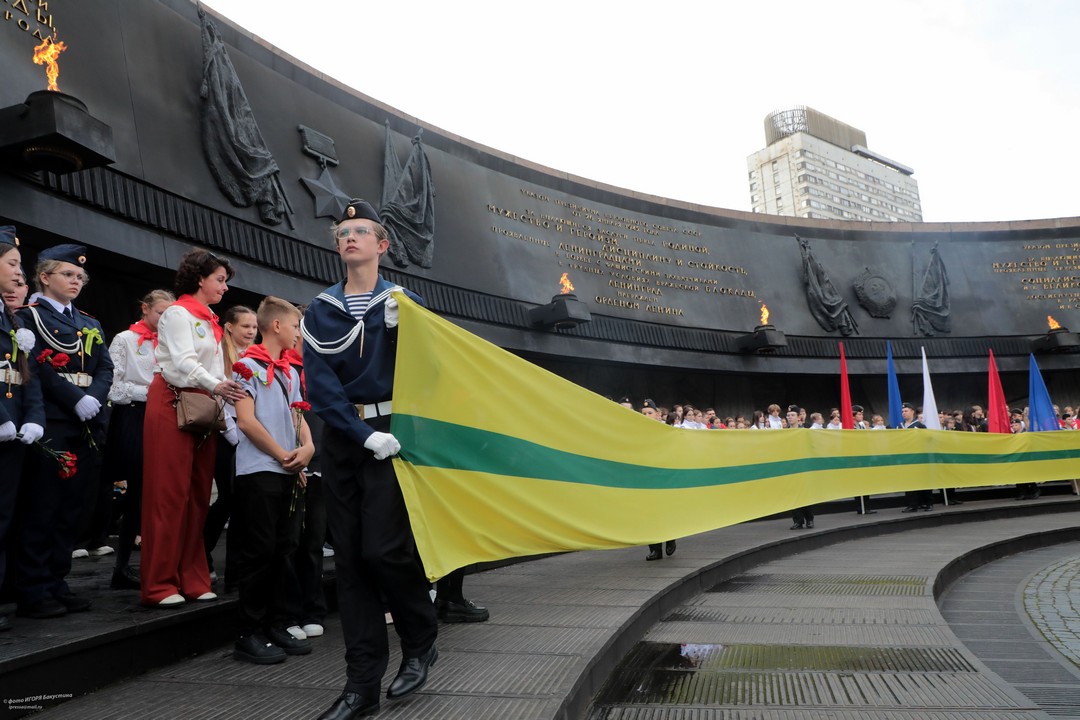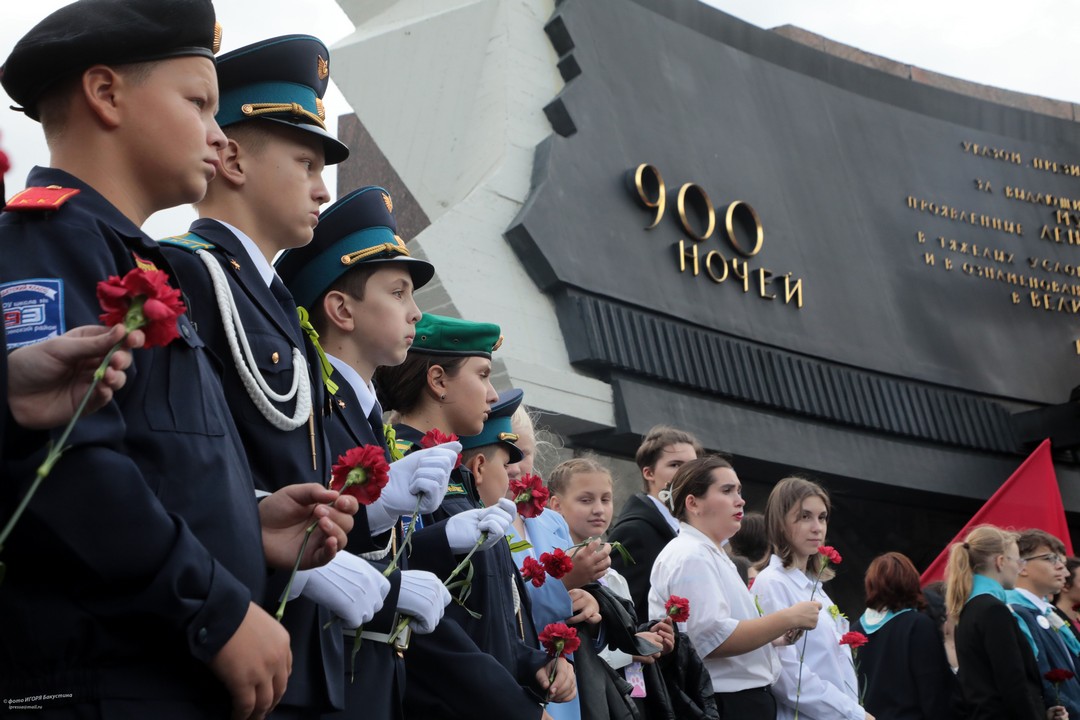У Монумента героическим защитникам Ленинграда на площади Победы школьники, участники детских общественных объединений и жители города собрались вместе, чтобы почтить память погибших.