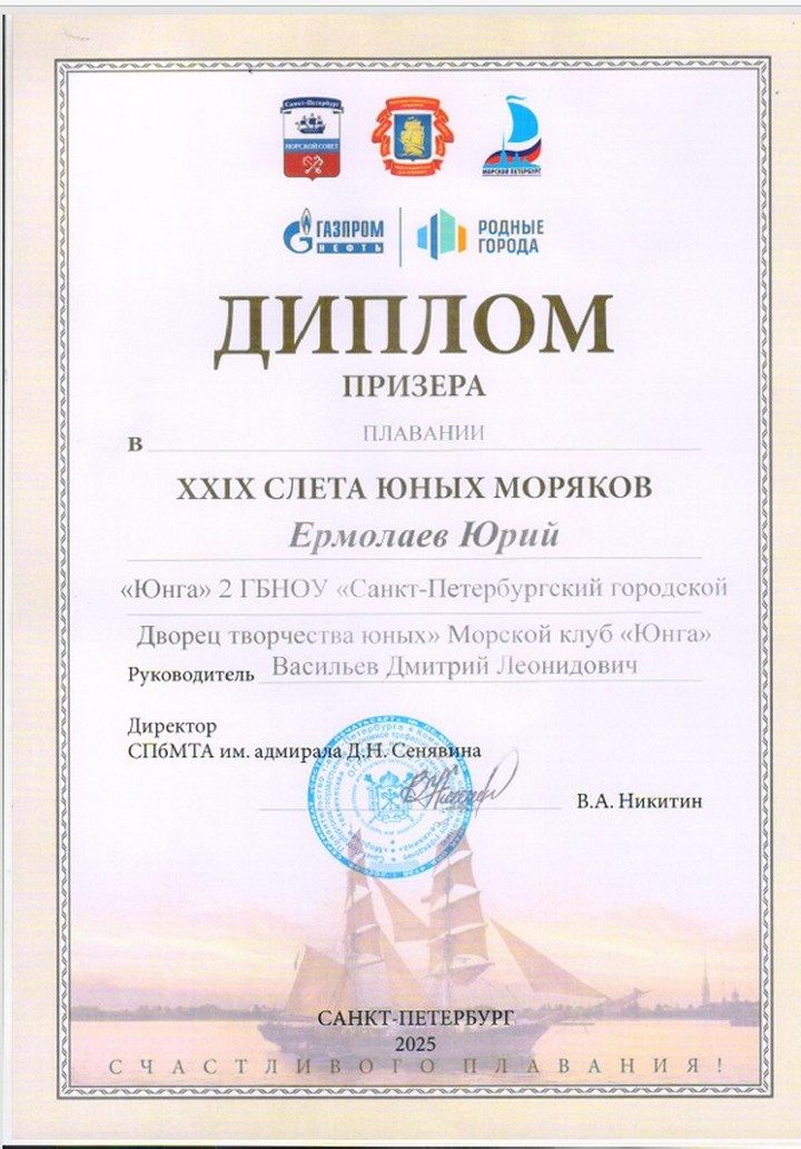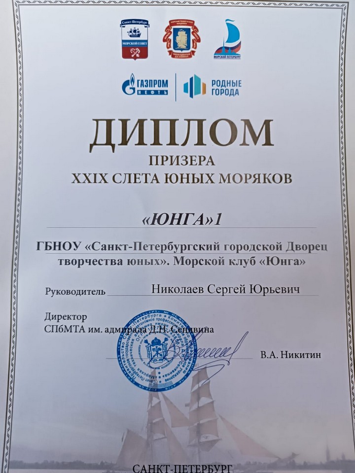 По результатам Слета команды клуба «Юнга-1» (младшая возрастная группа, руководитель Сергей Юрьевич Николаев, педагог Алексей Викторович Жилин) и «Юнга-2» (средняя возрастная группа, руководитель Дмитрий Леонидович Васильев и педагог Кирилл Иванович Комендантов) заняли 3-е общекомандное место в своих возрастных группах.