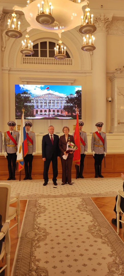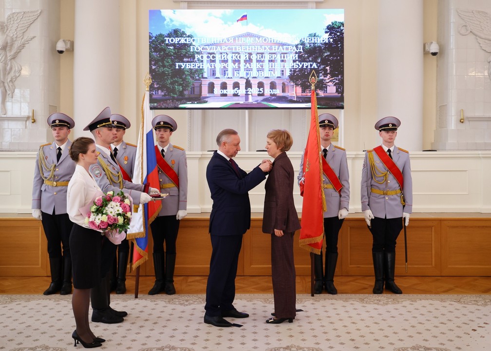 Восьмого октября в Смольном состоялась Торжественная церемония вручения Государственных наград Российской Федерации петербуржцам за успехи и достижения в различных сферах – науке, промышленности, культуре, спорте, энергетике. Награды вручил губернатор Санкт-Петербурга Александр Дмитриевич Беглов.