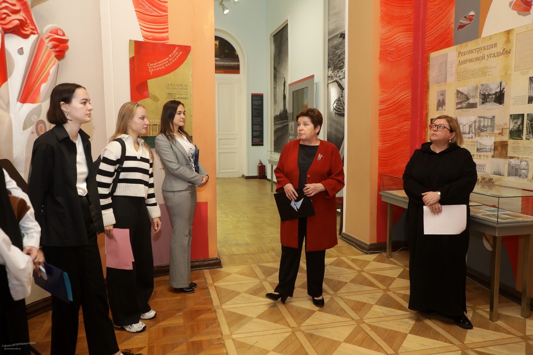 На станции «20 минут в Музее» состоялась познавательная экскурсия, которую провели опытные сотрудники музея. Экскурсовод Татьяна Степанова вместе с методистом Музея истории Дворца творчества юных Дарьей Кузиной подробно ознакомила коллег с экспозицией музея, уделив особое внимание уникальным экспонатам и интересным историческим фактам.