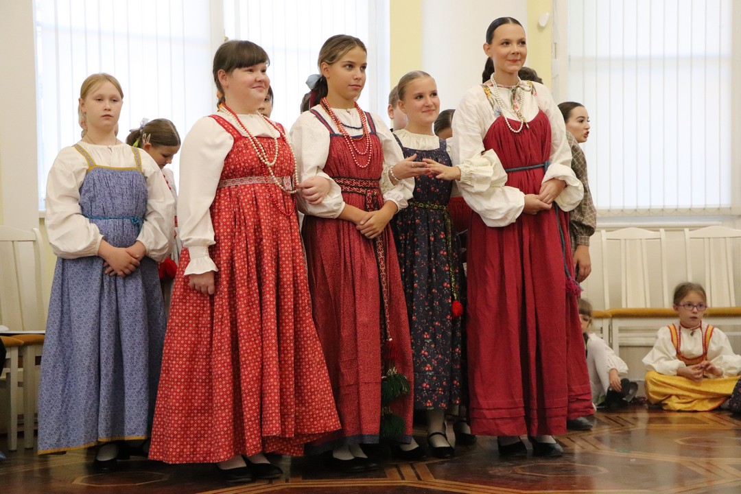 В павильоне Росси Санкт-Петербургского городского Дворца творчества юных прошел большой праздник, посвященный «осенним вечеркам». Обучающиеся Фольклорного ансамбля «Теремок» выступили перед зрителями и показали, как раньше танцевали, пели и играли. В исполнении ребят прозвучали народные песни Калужской и Вологодской областей и традиционные присказки. Юные артисты также с радостью продемонстрировали бытовые танцы и народные игры, распространенные среди русских крестьян и горожан в XIX–ХХ веках, а гости с большим удовольствием присоединялись к ребятам и танцевали с ними.