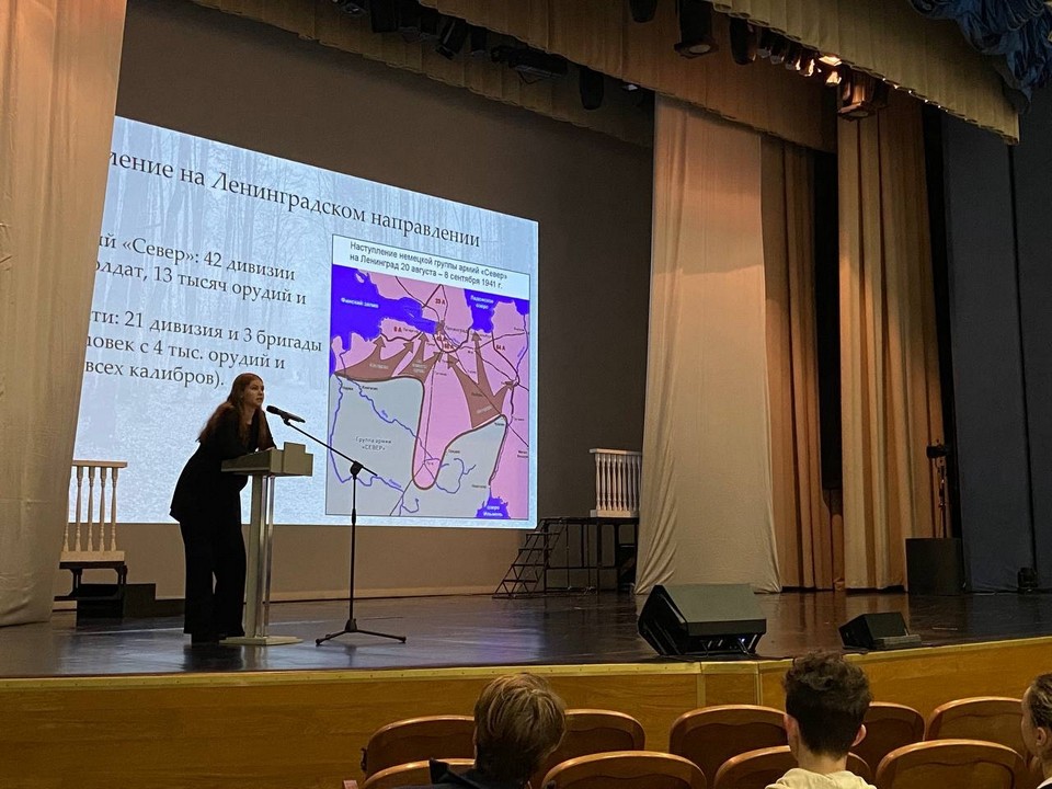 Ребята обсудили события первых месяцев войны на подступах к Ленинграду. Особое внимание было уделено героической обороне города Луги и созданию Лужского оборонительного рубежа — одного из революционных рубежей сопротивления на пути врага к северной столице. Учащиеся узнали о кровопролитных боях за Тихвином, значение которых для обеспечения снабжения блокадного Ленинграда трудно переоценить.