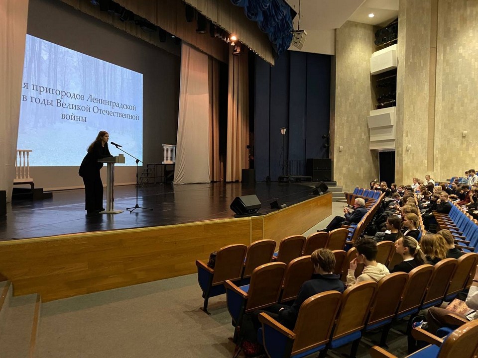 Также лицеисты вспомнили о трагедиях оккупированного Красногвардейска (ныне Гатчина). Вместе с тем прозвучали и истории мужества — например, о спасении культурных ценностей Петергофа, которые благодаря самоотверженности музейных работников и военных были эвакуированы из зоны боевых действий.