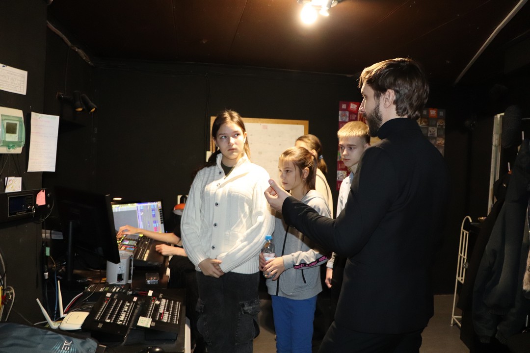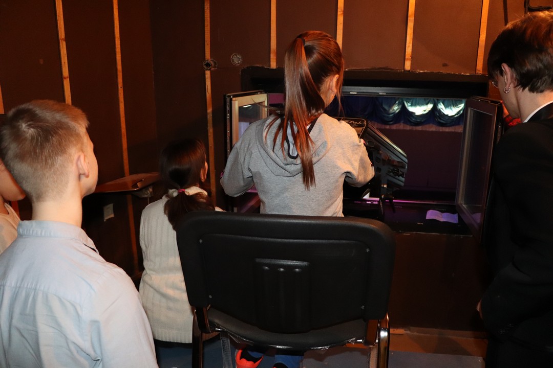 Школьники смогли побывать в тех частях театра, которые обычно простому зрителю недоступны и попробовать себя в роли осветителей, звукорежиссёров, монтировщиков сцены и, конечно, артистов.