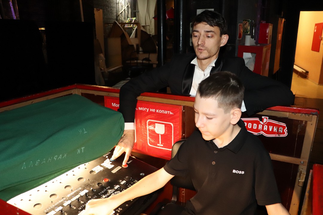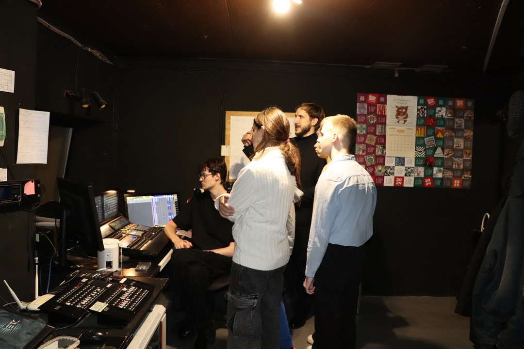 Каждый участник узнал, что такое световой фильтр и как создать нужную атмосферу на сцене, как управлять пультом вывода света и как разноцветные лучи превращаются в настоящую магию театра. Затем все поднялись на верхнюю точку зала и попробовали самостоятельно поработать со световой пушкой. За пультом звукорежиссера ребята поняли, как не просто настроить театральные шумы, как происходит озвучка спектакля и запускается фонограмма.