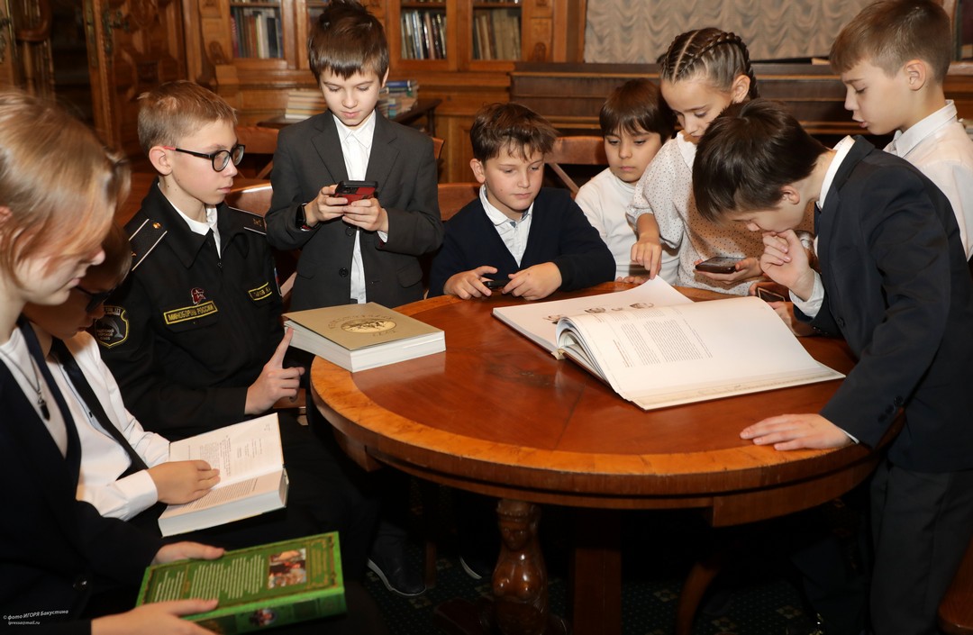 Особое внимание было уделено, конечно же, уникальным изданиям, связанным с именем великого русского мореплавателя. Юнги с удовольствием слушали про увлекательный и подробный рассказ о первом русском кругосветном плавании. Итогом плавания И.Ф. Крузенштерна стало издание трудов экспедиции: журнала путешествия, карт и рисунков.