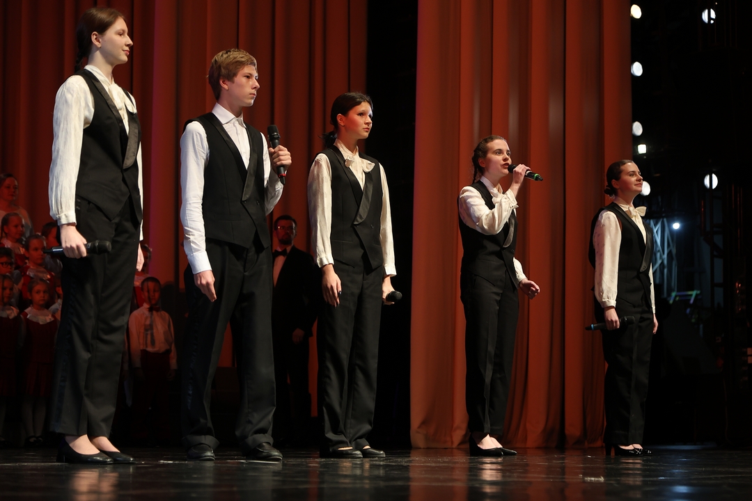 В исполнении воспитанников и выпускников хоровых коллективов Образцового детского коллектива Санкт-Петербурга Ансамбля песни и танца имени И.О. Дунаевского прозвучали известные композиции, которые облетели весь мир. Юные певцы мастерски исполнили хиты, знакомые каждому с детства: зажигательные мелодии «Марша веселых ребят» и «Марша футболистов», романтичные мотивы песен: «Песня о Волге», «Весна идет» и «Лунного вальса». Ансамбль выпускников исполнил попурри на темы песен композитора, созданных для кинофильмов. Каждая песня погружала публику в атмосферу любимых советских фильмов, вызывая теплые воспоминания и улыбки на лицах слушателей.