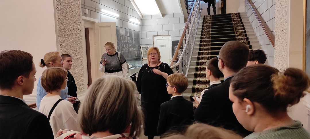 В Государственном музее «Исаакиевский собор» методист сектора музейной педагогики Кристина Викторовна Иванова познакомила ребят и педагогов с особенностями проведения экскурсии в Исаакиевском соборе, поделилась своим опытом и рассказала, на что стоит обратить внимание во время экскурсии: как взаимодействовать с экскурсантами, как поставить группу, чтобы всем было видно объект рассказа и многое другое. Мастер-класс также прошёл в формате экскурсии, поэтому ребята узнали не только теорию и практику экскурсоведения, но и познакомились с историей строительства Исаакиевского собора.