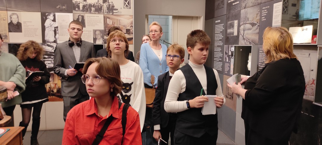 В Государственном мемориальном музее обороны и блокады Ленинграда главный хранитель музейных ценностей, экскурсовод, член жюри Регионального конкурса юных экскурсоводов школьных музеев - Анна Геннадьевна Савельева провела для участников конкурса познавательную экскурсию. Ребята узнали много нового и интересного из истории Музея, а также познакомились с профессией экскурсовода. Анна Геннадьевна поделилась своим опытом, подробно рассказала о «скрытой» части работы экскурсовода – составлении методической разработки экскурсии.