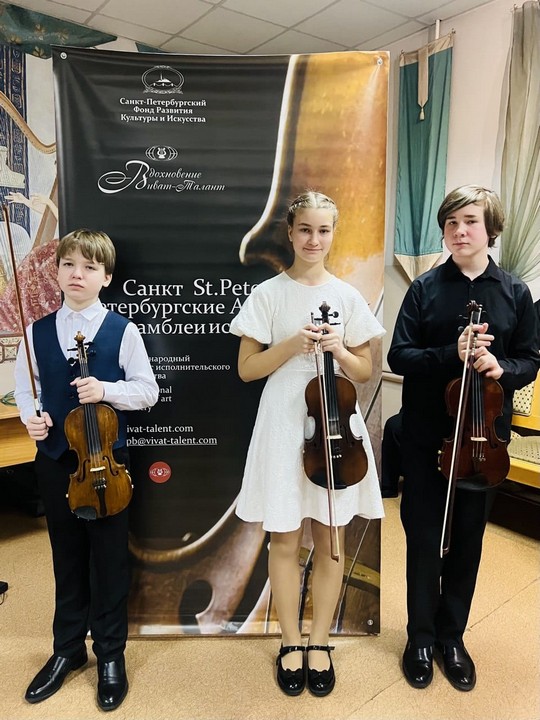 Дворец творчества юных представляли скрипачи - солисты Струнного сектора.