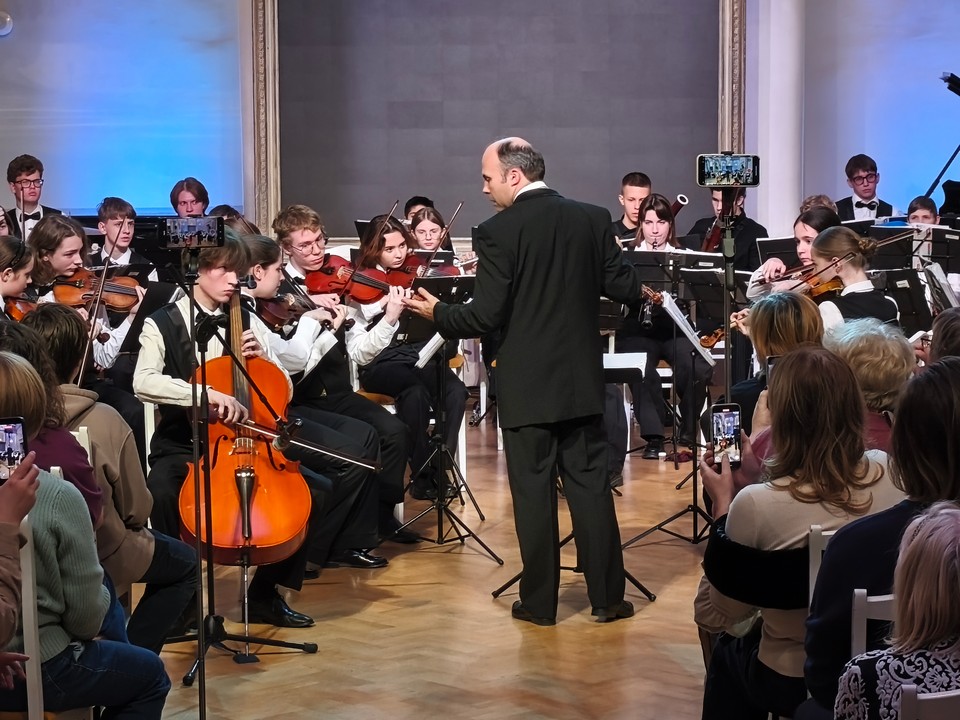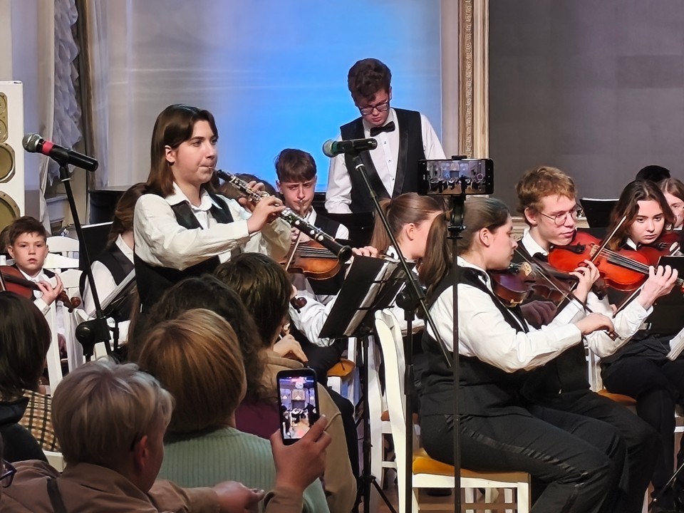 25 ноября Симфонический оркестр Ансамбля песни и танца им. И.О.Дунаевского звучал в Белоколонном зале Аничкова дворца. Для многих юных артистов этот концерт стал дебютом после обновления состава оркестра. Новичков пришли поддержать опытные выпускники, которые заняли свои привычные места в оркестре. Программа включала отрывки из знаменитой сюиты Георгия Свиридова «Метель», вдохновленной одноименной повестью А.С. Пушкина, а также шедевры классической музыки зарубежных авторов: К.Сен-Санса, Э.Морриконе, А.Пьяццоллы, Дж. А. Ревербери, С.Шаминад. Исполнение сопровождалось сольными партиями музыкантов на различных инструментах.