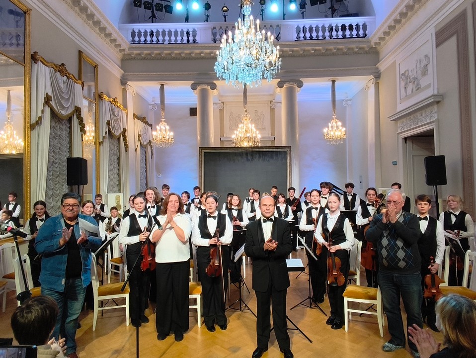 Младший ансамбль скрипачей порадовал зрителей весёлыми пьесами композитора Ж. Металлиди. Такое мероприятие символизирует передачу опыта молодым поколениям и подтверждает приверженность традициям Аничкова дворца, основанным на непрерывности и преемственности музыкального искусства.