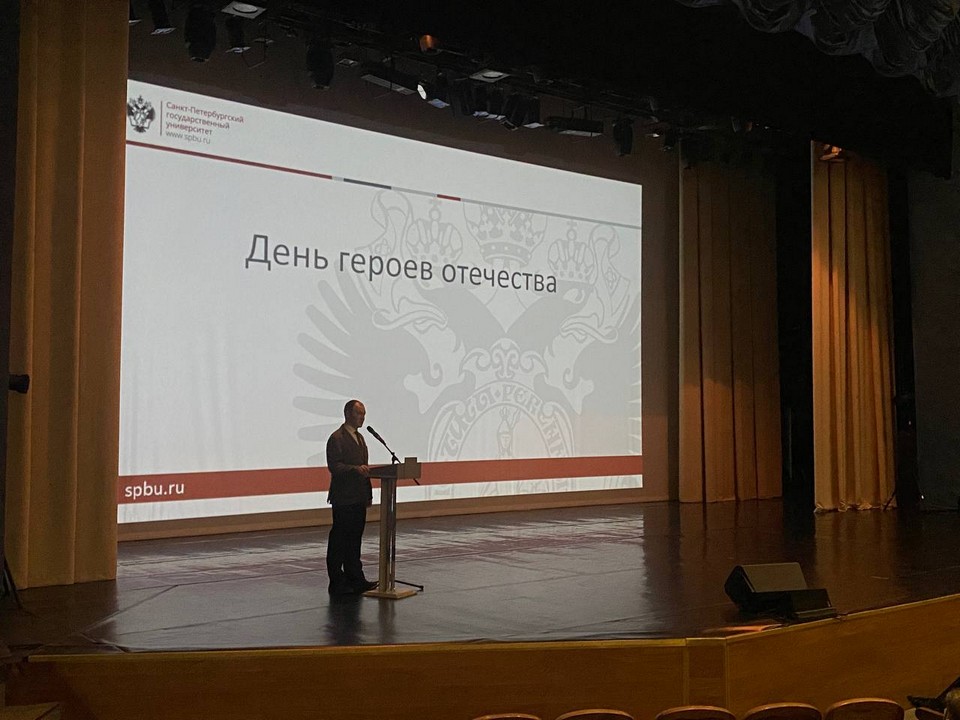 В рамках внеурочных занятий «Разговоры о важном» восьмого декабря в Аничковом лицее состоялась лекция, приуроченная ко Дню Героев Отечества. Выступил перед учащимися Кирилл Борисович Назаренко – доктор исторических наук, профессор, заведующий кафедрой источниковедения истории России Института истории Санкт-Петербургского государственного университета, а также учитель истории Аничкова лицея.