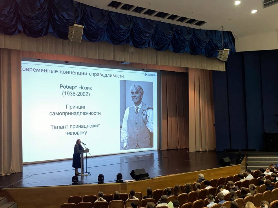 Мария Сергеевна рассказала лицеистам, в чём разница между понятиями «закон» и «справедливость», почему важно, чтобы правовые нормы служили не только порядку, но и человеческому достоинству. Слушатели вместе размышляли над сложными этическими и правовыми дилеммами, в том числе обсудили дело Алисы – широко известную историю, ставшую символом столкновения буквы закона и общественного чувства справедливости.