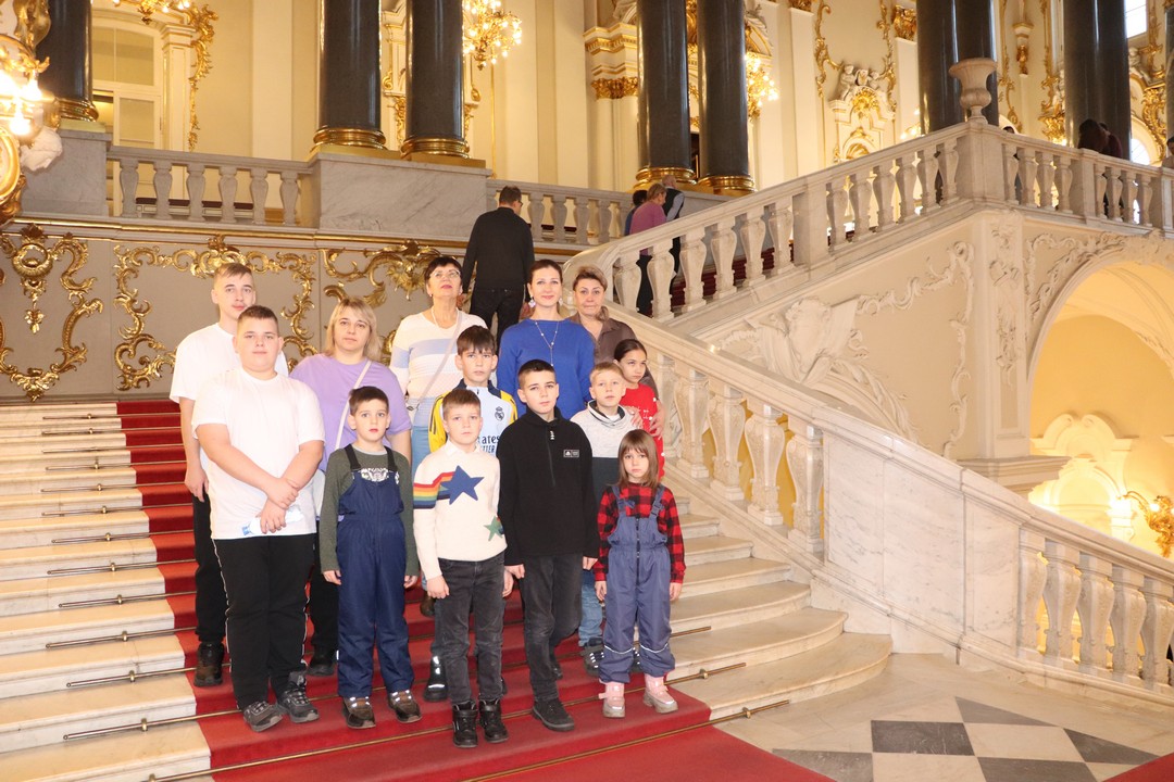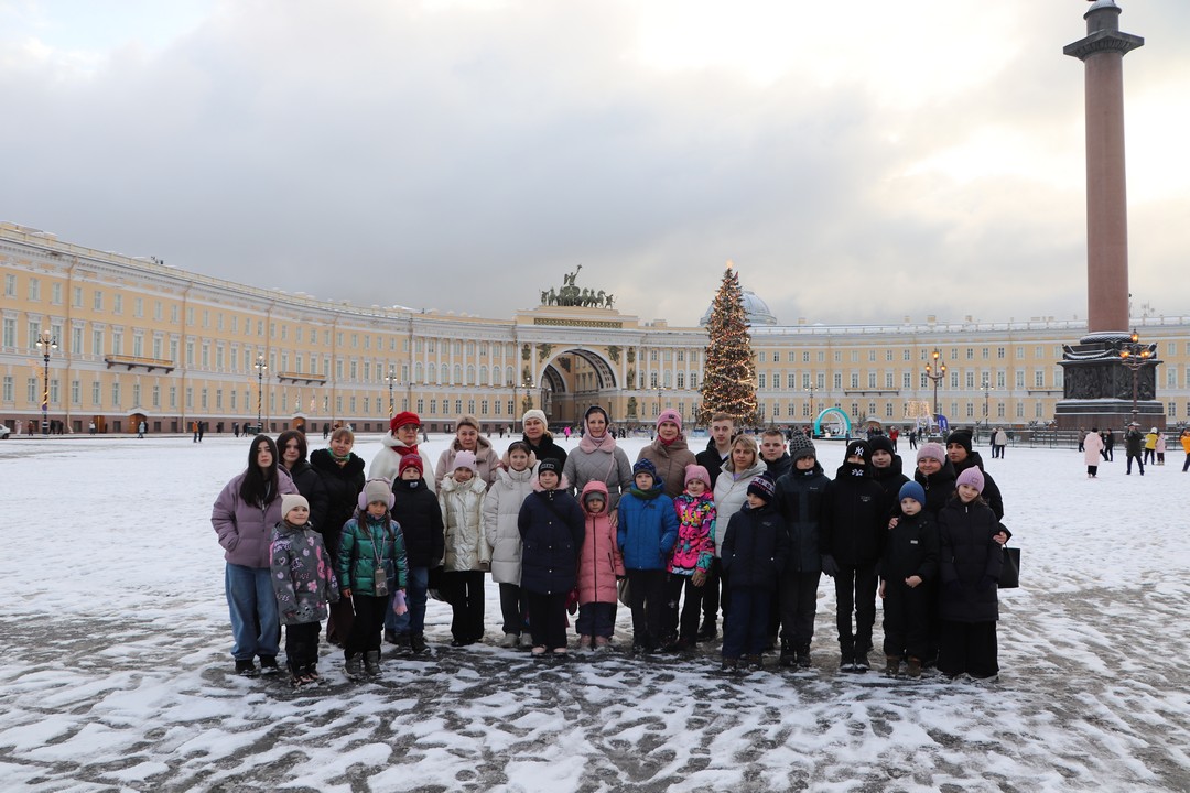 Специальная двухдневная программа была организована для детей военнослужащих, находящихся в длительных командировках и в зоне проведения специальной военной операции. Они посетили мастер-класс «Рождественская декоративная композиция» от педагога Отдела предшкольного образования Дворца Александры Викторовны Ершовой, побывали на экскурсии по новогоднему Петербургу вместе с Ильей Владимировичем Вагановым, посетили Эрмитаж и современное культурное пространстве «Новая Голландия». А перед спектаклем ребята собрались в Универсальном читальном зале Библиотеки Аничкова дворца, где их поздравили с наступающими праздниками и вручили новогодние подарки, генеральный директор Санкт-Петербургского городского Дворца творчества юных Мария Катунова, временно исполняющий обязанности заместителя командующего войсками Ленинградского военного округа по военно-политической работе полковник Виталий Владимирович Янковец и заместитель председателя Комитета по образованию Санкт-Петербурга Петр Владимирович Кузьмин. «Дорогие ребята и их родители, от командования Ленинградского военного округа я поздравляю вас! Как же здорово встречать Новый год в таком историческом месте. Желаю всего наилучшего, чтобы все ваши самые заветные мечты исполнились! С наступающим Новым годом!», – отметил Виталий Владимирович.