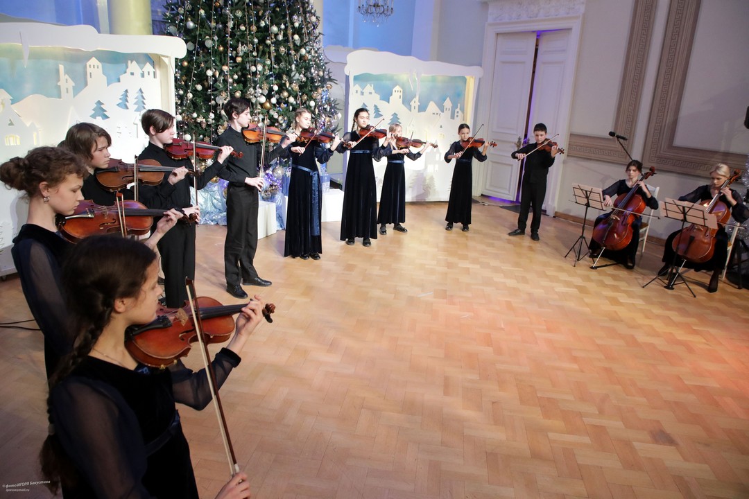С творческими подарками выступили дворцовцы: Ансамбль скрипачей и хореографический коллектив Ансамбля песни и танца им. И.О. Дунаевского. Они перенесли зрителей в мир сказки и волшебства.