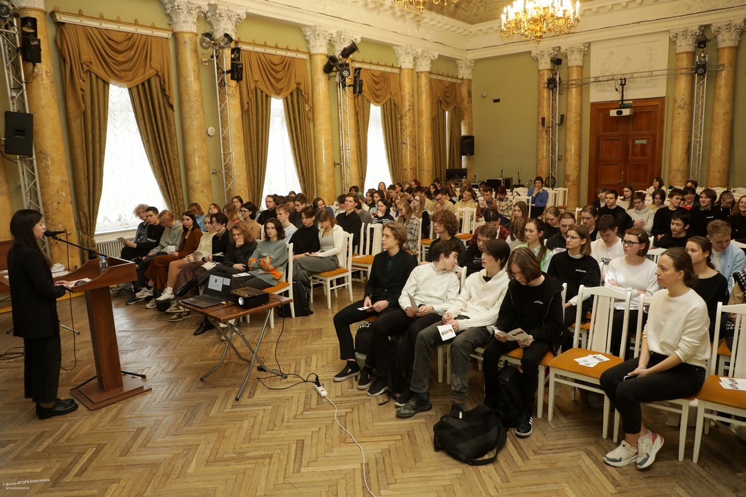 Перед учащимися 9-11 классов Аничкова лицея выступила его выпускница и студентка Санкт-Петербургского государственного университета – Апполинария Гунина.