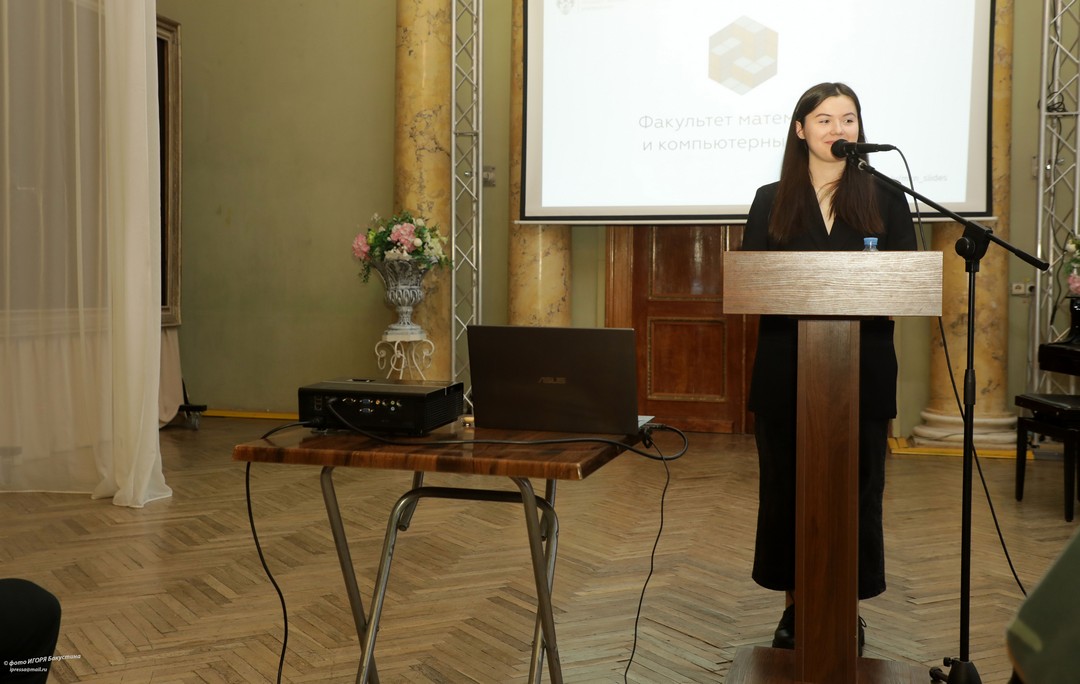 Апполинария рассказала будущим абитуриентам о факультете математики и компьютерных наук. Лицеисты узнали о направлениях подготовки на факультете, количестве бюджетных мест и о минимальных баллах для поступления. Также, Апполинария рассказала о возможностях развития и трудоустройства после окончания университета, о преподавательском составе факультета и о студенческой жизни.